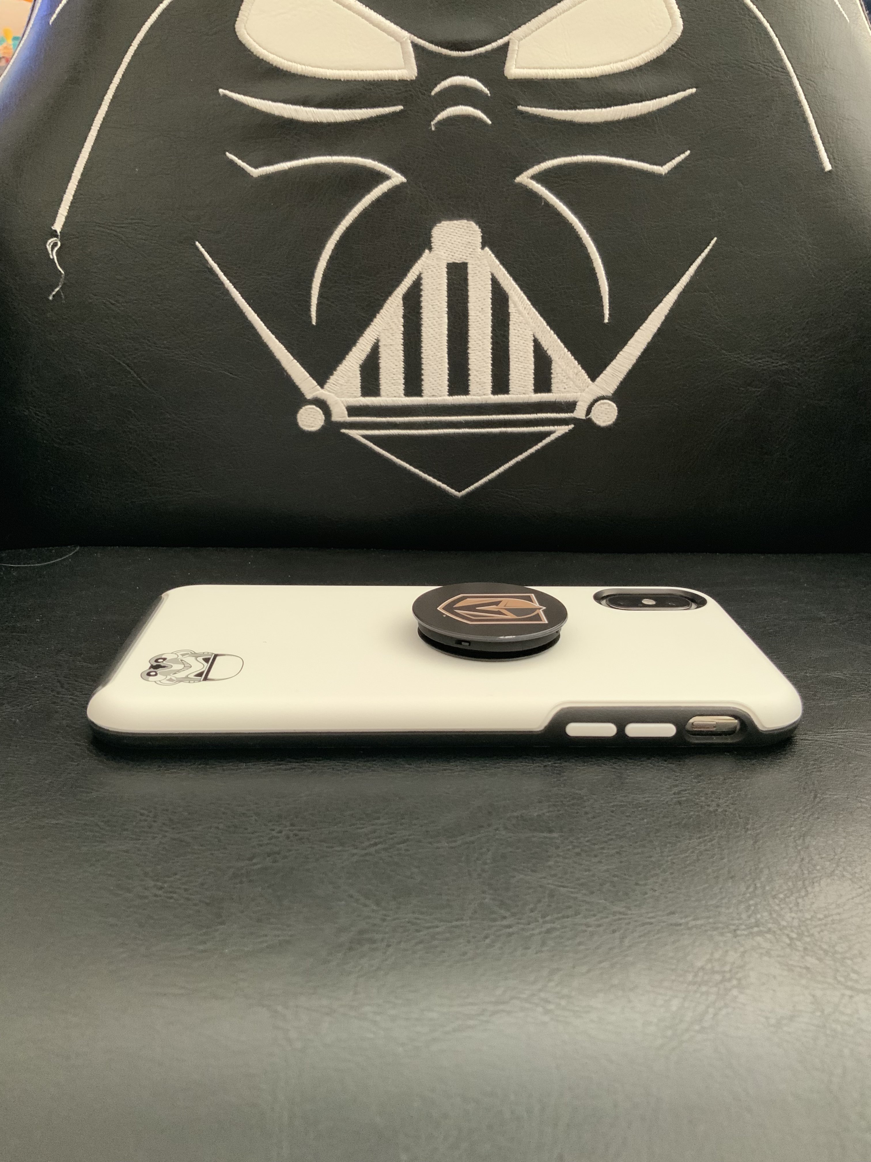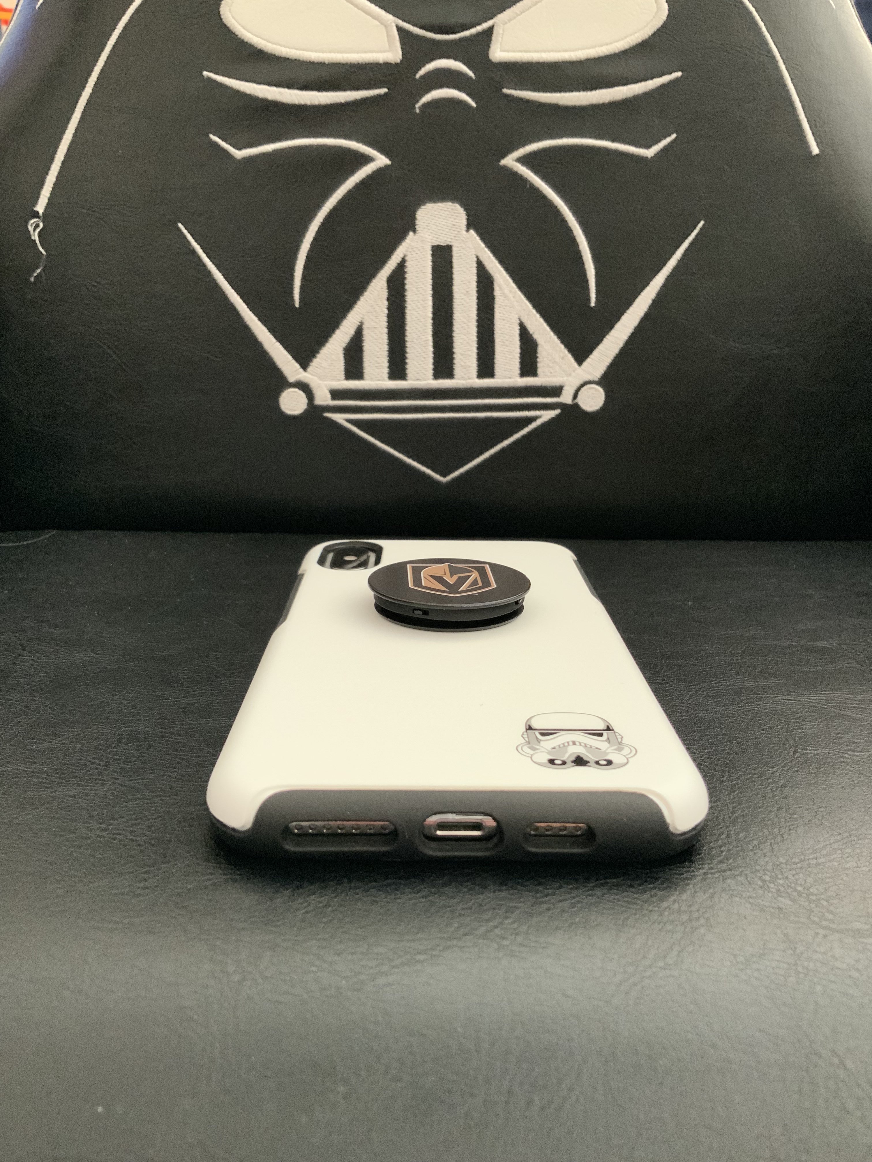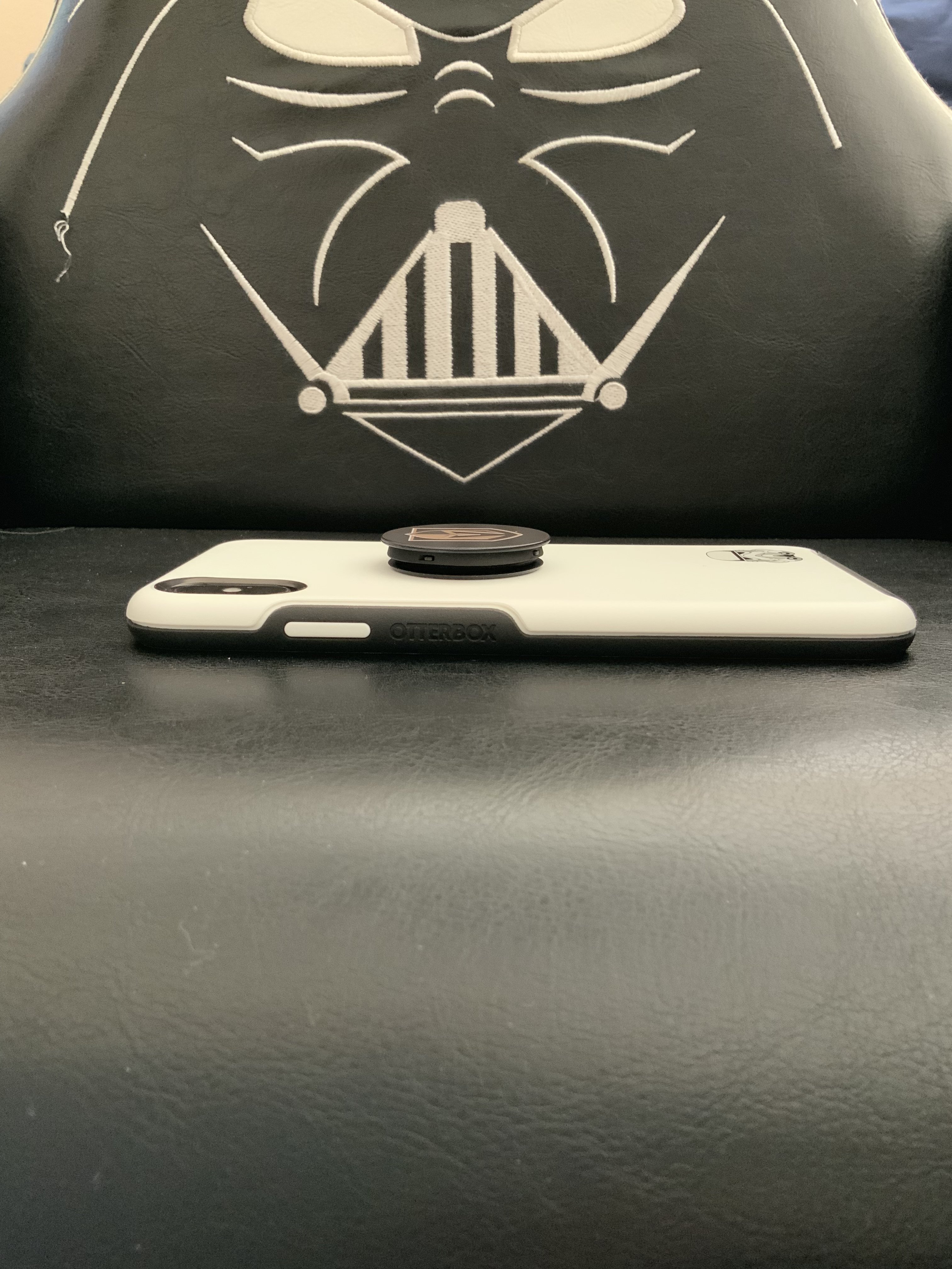 I picked up the Symmetry Stormtrooper case today at Best Buy. A little hesitant because I’ve never liked Otterbox cases in the past as I’ve always found them to be too bulky and expensive, however, I’m pleasantly surprised by this case. I’ve used the Evutec Aer Karbon on my past four phones because it checks all my requirements, but wanted to try something different. This case is thin, protective, and very well made. Very happy with the purchase. My son’s menacing Vader chair to complement it