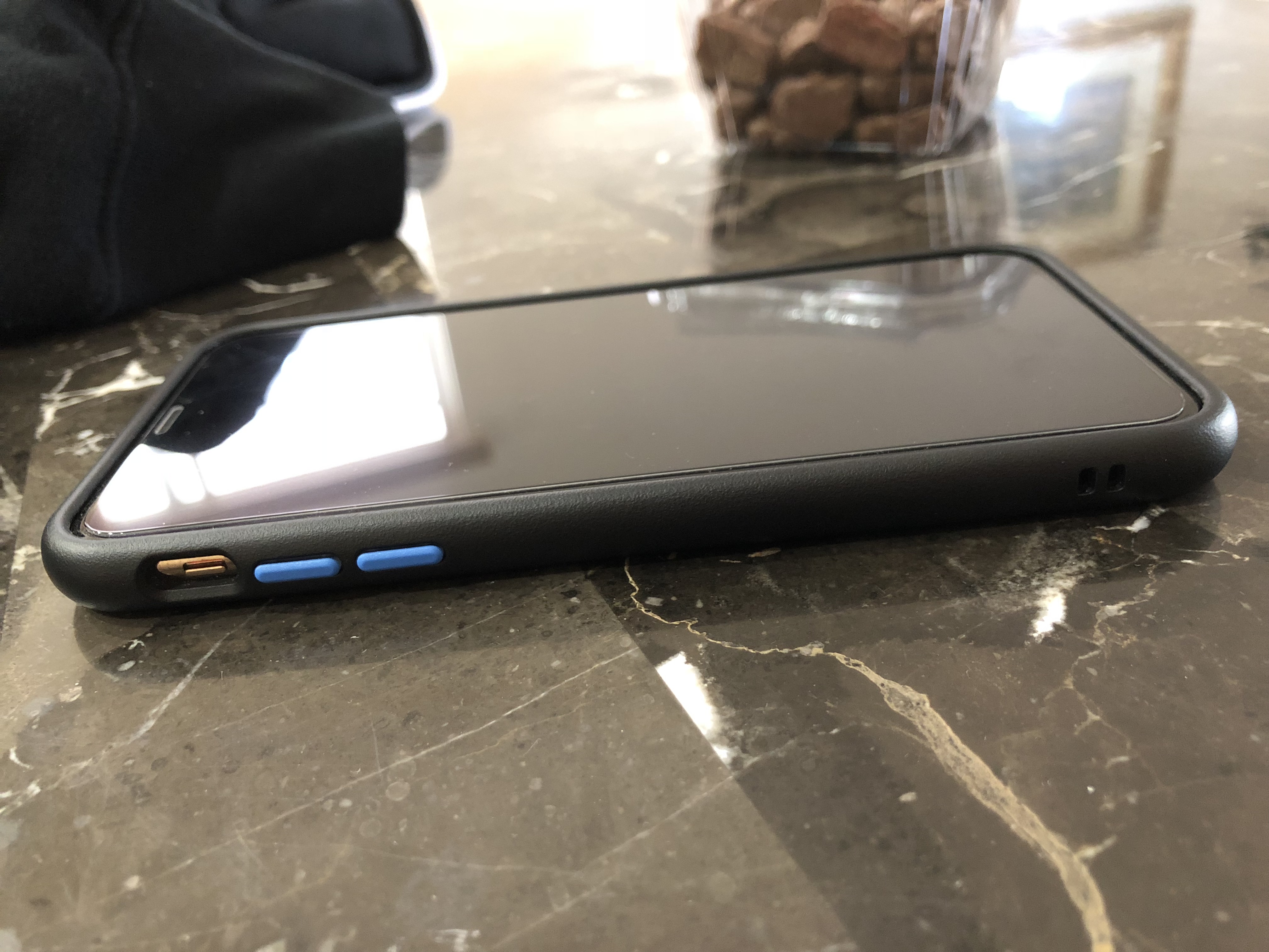 Here the UAG PathfindAH Carmine! Love the color! For such a rugged looking case, it really is superthin, especially on the sides, but seem to have a little more blocking us at the top and the bottom... were counts. The lip for the screen is relatively generous, but honestly you don’t even notice it! So far this is the best I’ve gotten. Super tactile looking, stylish yet protective!
