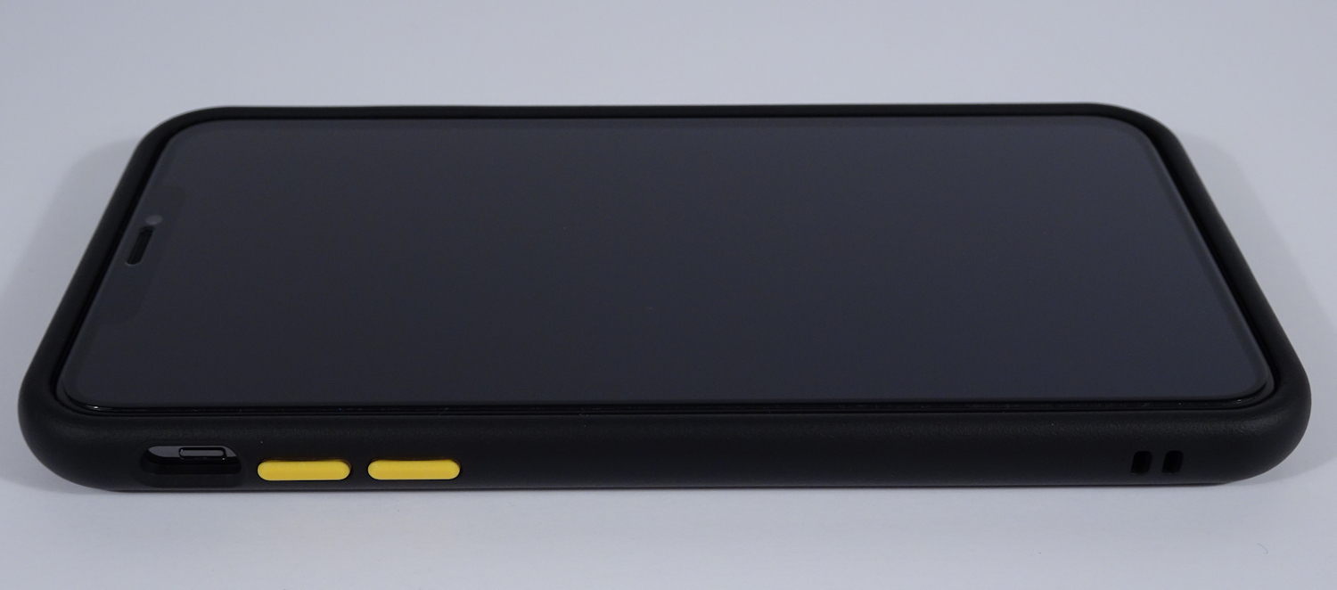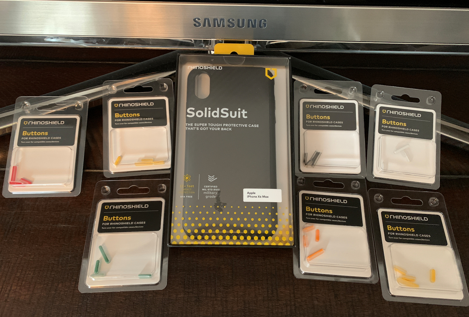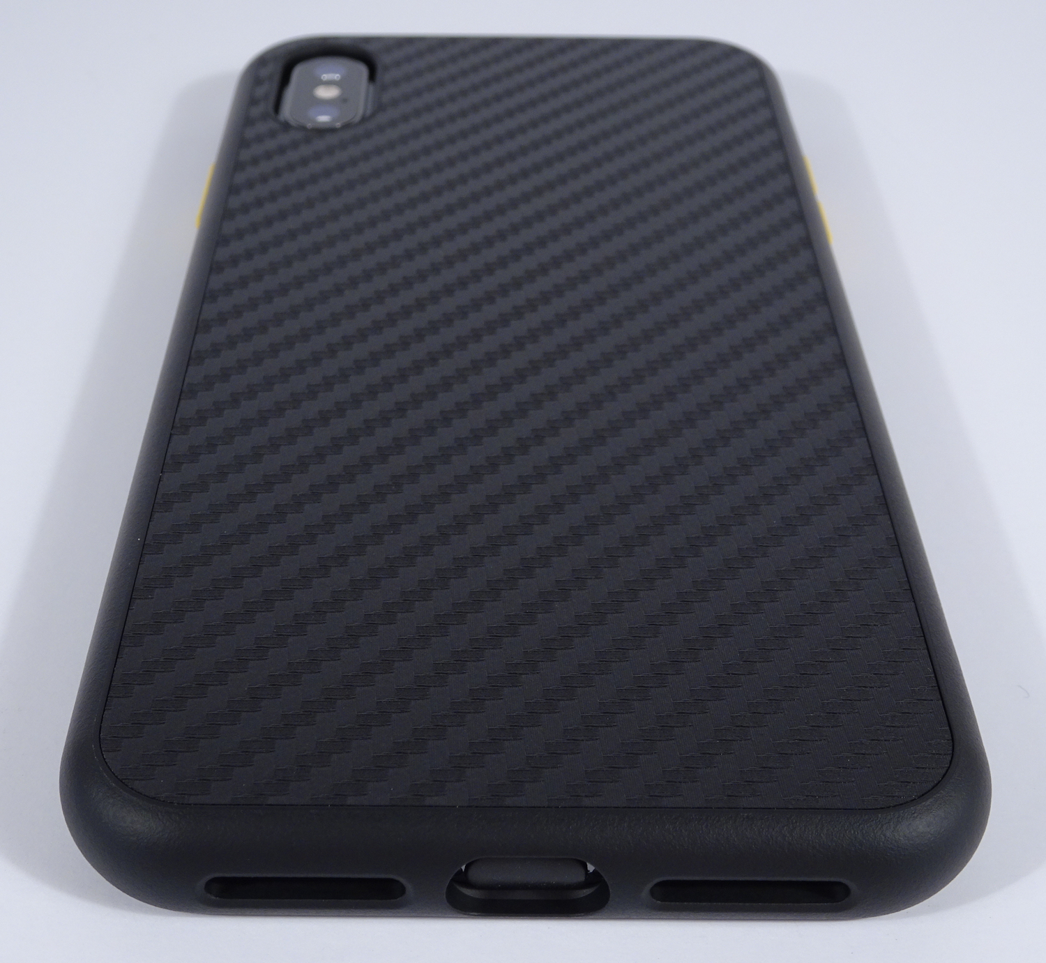 Rhinoshield Solid Suit in carbon fiber with yellow buttons. The case feels nice, fits perfect, looks great but it's slippery as a greased pig. Love the different colored buttons. Wonder if the "Leather" version would have more grip? Also don't like that the bottom grill cutouts are from last years iPhone X.