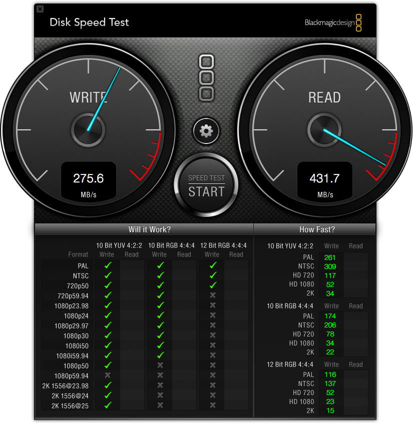 I recently got two Samsung T3 USB 3.0 external SSD's - a 512gb and also a 1TB model. They both clock the same with the BlackMagic Disk test.
