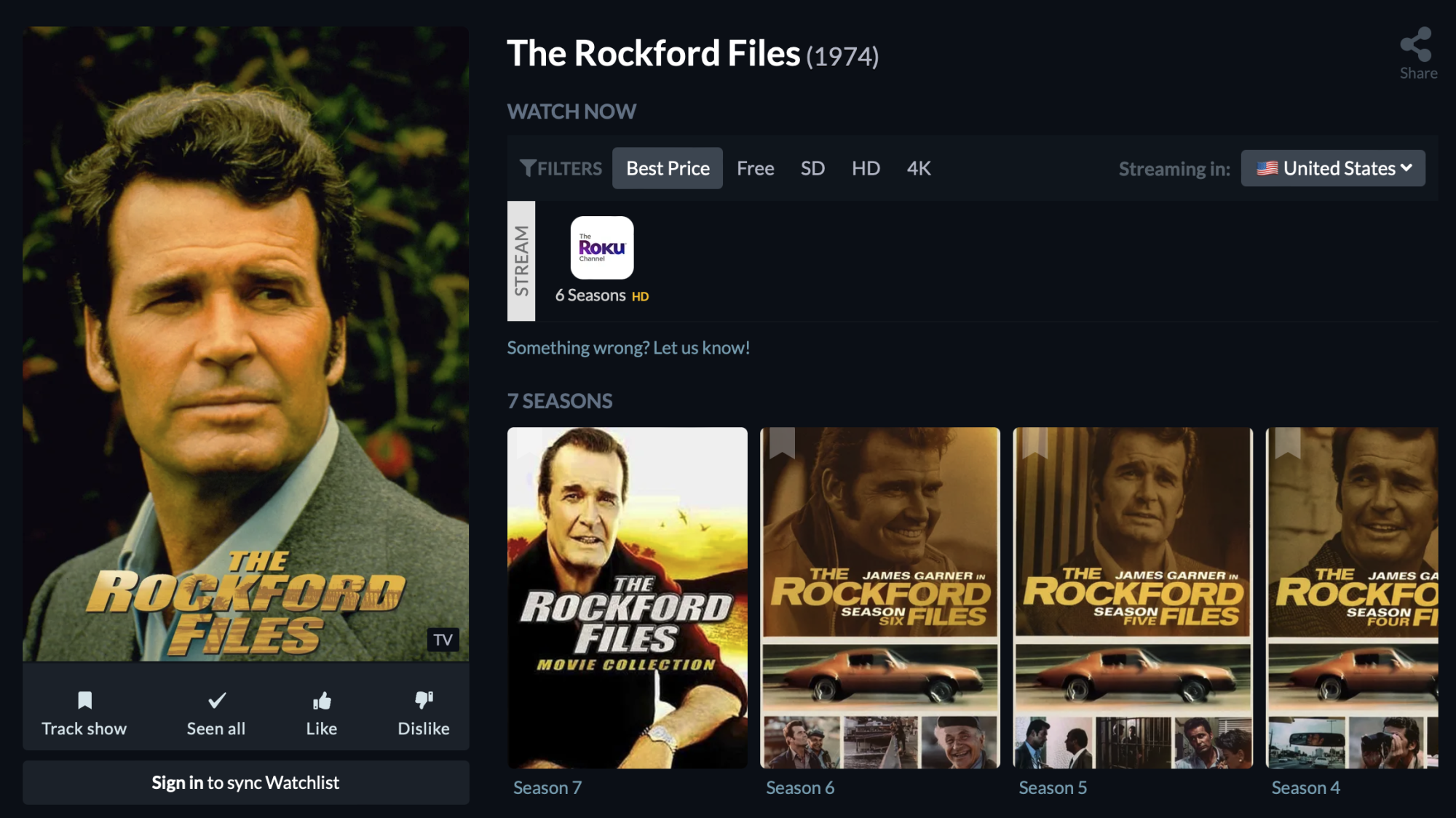 Well dang! I'm trying to watch The Rockford Files and it's not available on Prime or on iTunes...