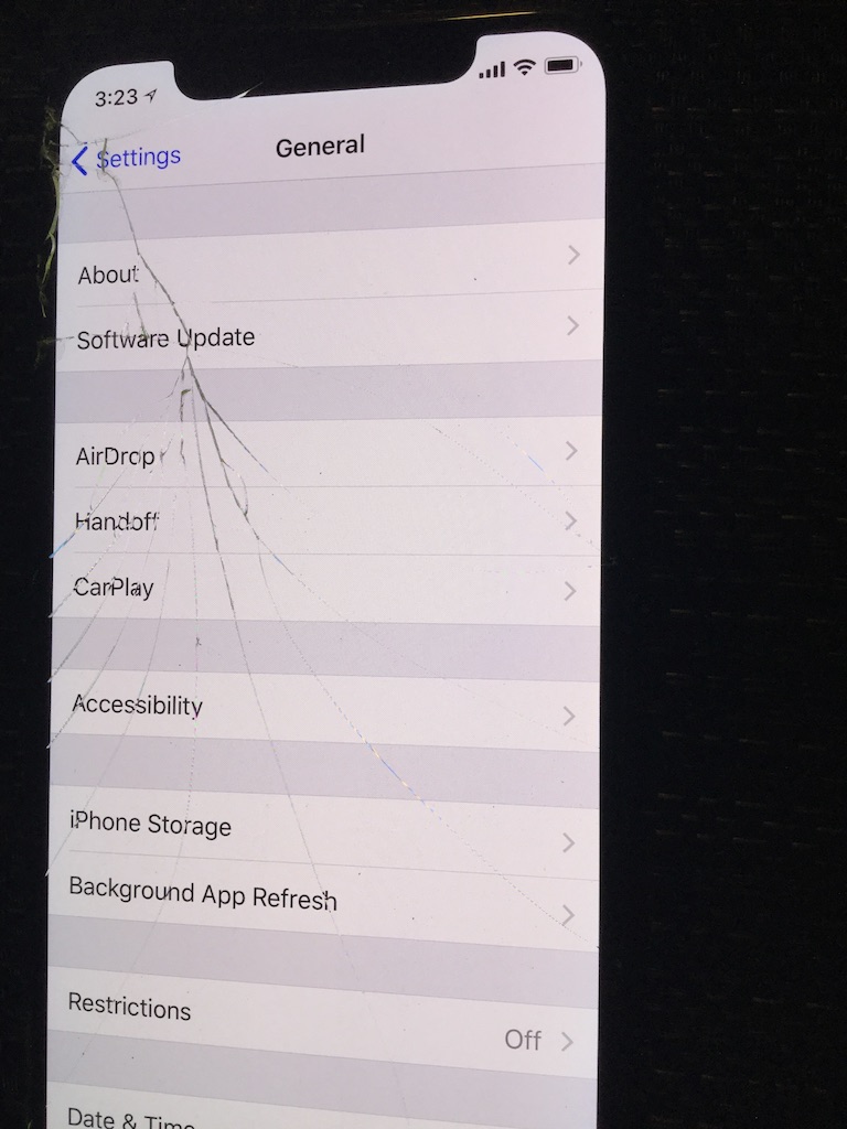 Day 13...bent over to look under my vehicle and it slid out of my shirt pocket (which I very rarely do as it's asking to have your phone slide out), fell about 2 1/2' onto the concrete floor in the parking garage.