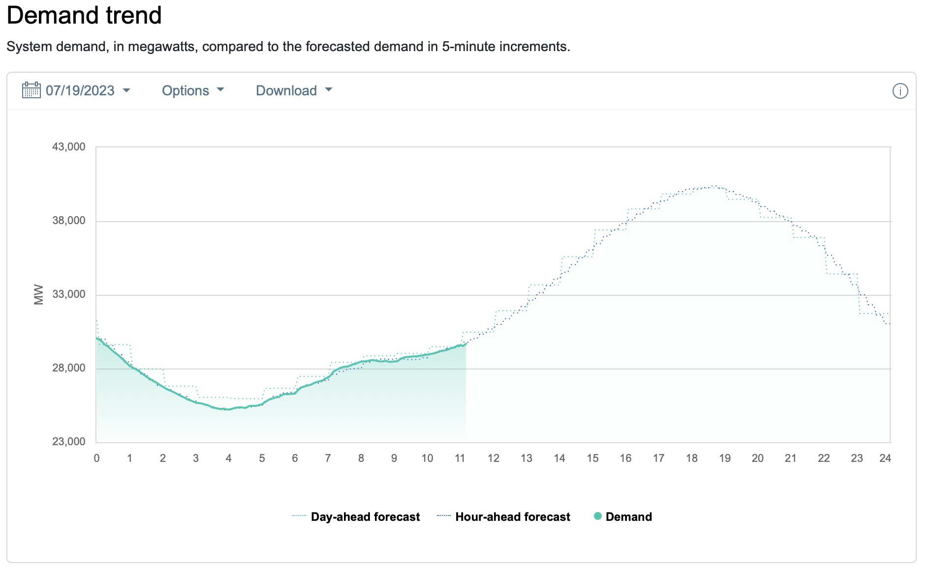 This is for the State of California. It's not till midnight that things start calming down electric wise. Between 3pm-11pm we have our heaviest usage. And that's just to keep the house around 78F because of our 105F days here where we are.