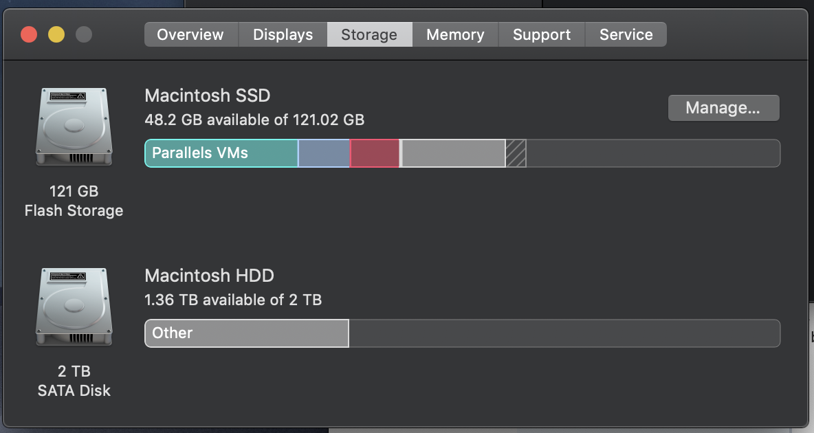 Now I use the 2TB HDD occasionally to store some media, and the 120GB SSD to store all apps and my work VM.