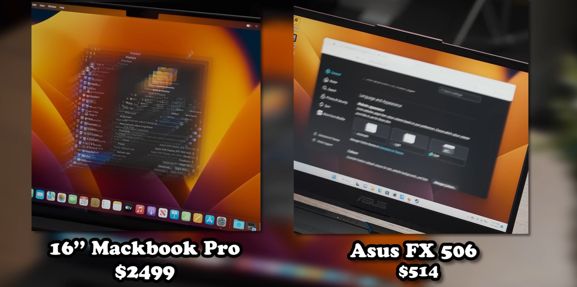 Yep that's the point, MacBook has ghosting when there is anything on the screen moving fast, he is also moving the Firefox page on the right side with similar speed as the left side but that cheap old laptop doesn't have the same problem. better watch the whole video on his channel to get the idea (Dawid Does Tech Stuff, I Bought A 16inch MacBook Pro For Gaming...)