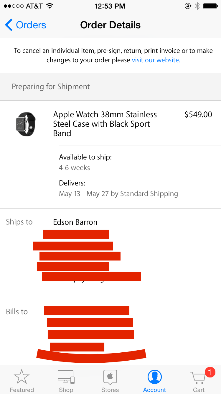 Not a problem. I am heading over to Italy the first two weeks of May and was hoping against hope I would see it before I left. I received the email at 3:53 AM EST but Apple Chat was unable to provide me with an actual order time. I saw some May 13 to 27 orders were already shipping. I appreciate the help.