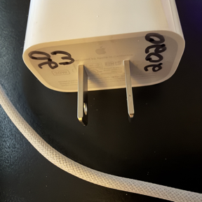 - Power adapter is an Apple 20 Watt USB-C I purchased (or was included) in 2020. I mark the year I start using any power plug on the bottom. (see pic in a new reply)