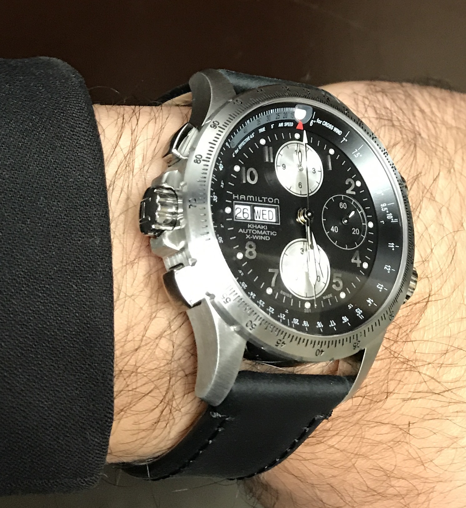 The thought goes, if a pilot needs to use the slide rule type bezels for calculating cross winds, it would be better access.Adjusters on the left side, odd