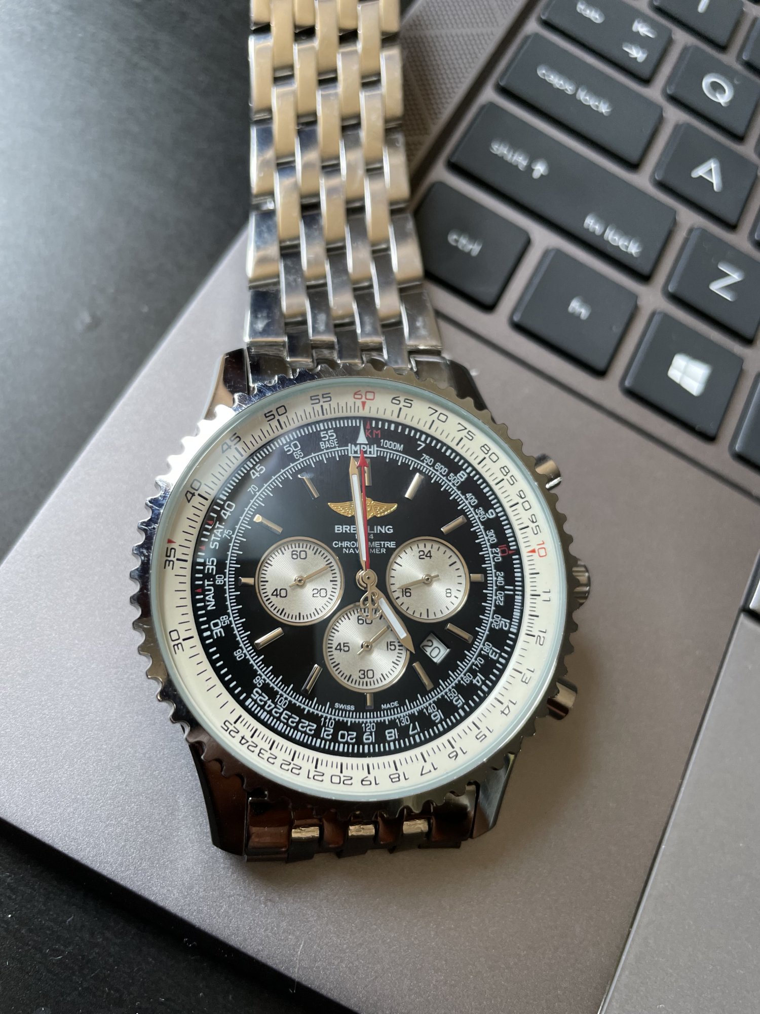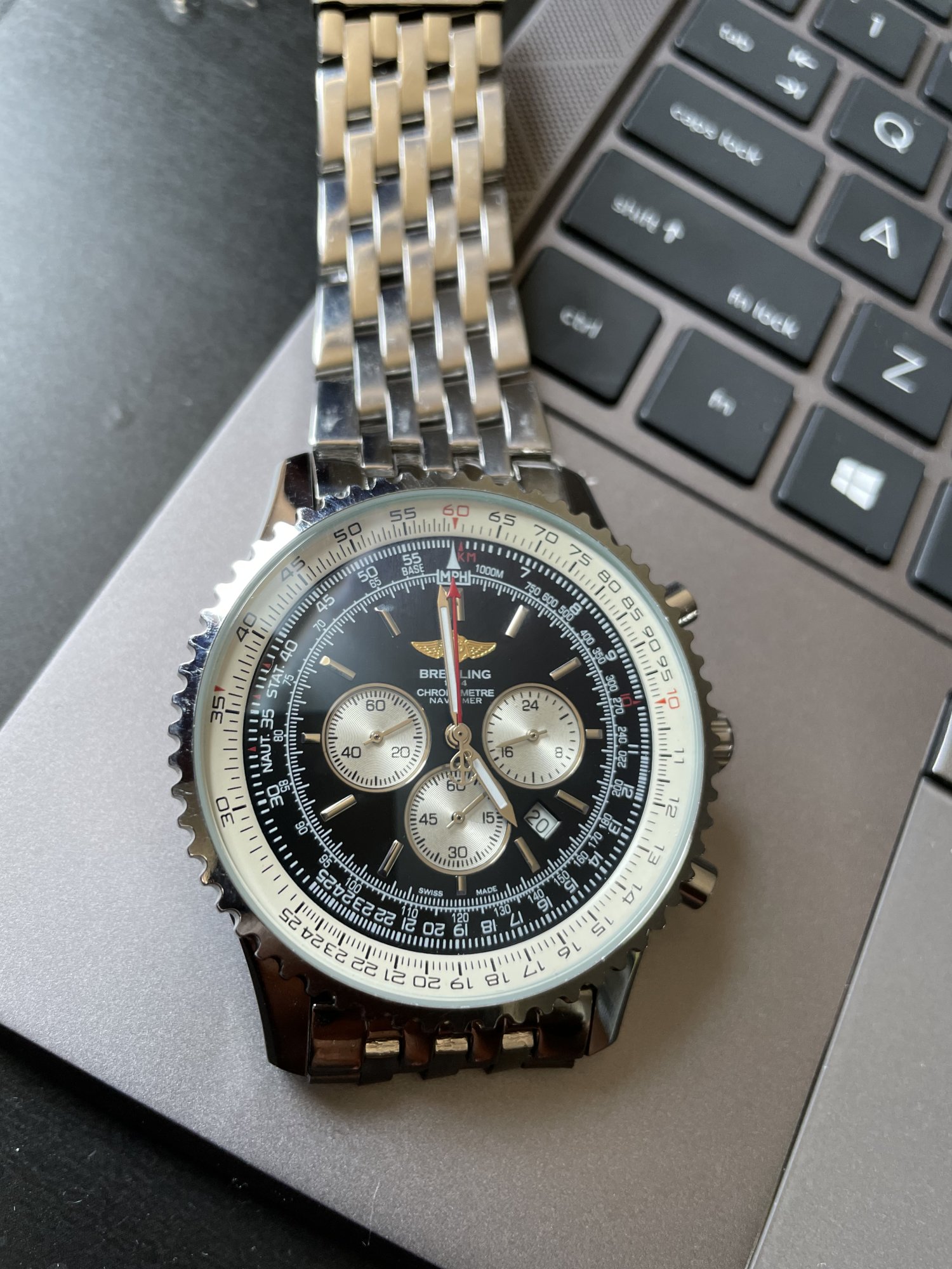 Also as far as I know, Breitling doesn't use any chronograph movements with the 60/60/24 gearing for the subdials. Every Breitling Navitimer chronograph I've ever seen has registers for 60/30/12. I hope OP did not spend too much on this if it's fake. Even $300 would be too rich for my blood for a fake watch.😬I too am almost certain that this is a counterfeit Breitling. All the genuine ref A24322 models I've seen and Googled have the subdials at 12, 6 and 9 o'clock in keeping with their automatic movement. Should also have the date window at the 3 o'clock position with the Breitling winged logo above and to the left of the date window. Any for sale well below the $4k to $5K range cannot generally be expected to be an authentic A24322 model.
