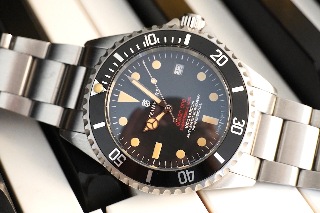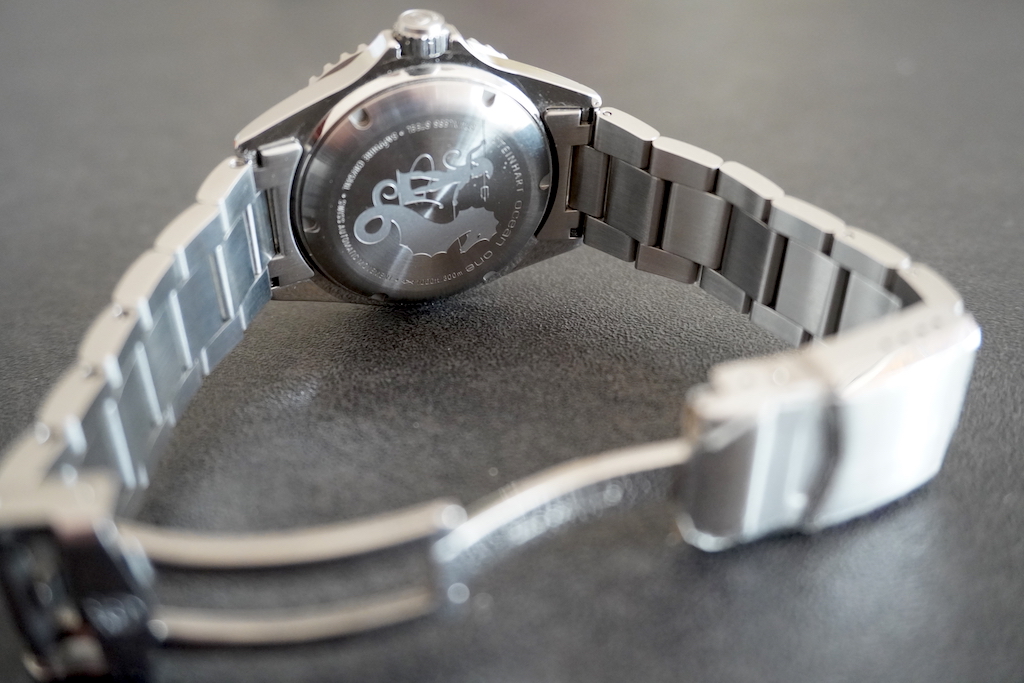 I’ve been wearing the watch for a number of months as a daily beater without pampering, and I note with a 16x magnifying glass some very minor hairline marks on the black aluminium bezel which is to be expected. A ceramic bezel was not available on this model, but the slightly more pricey premium models do feature this option.