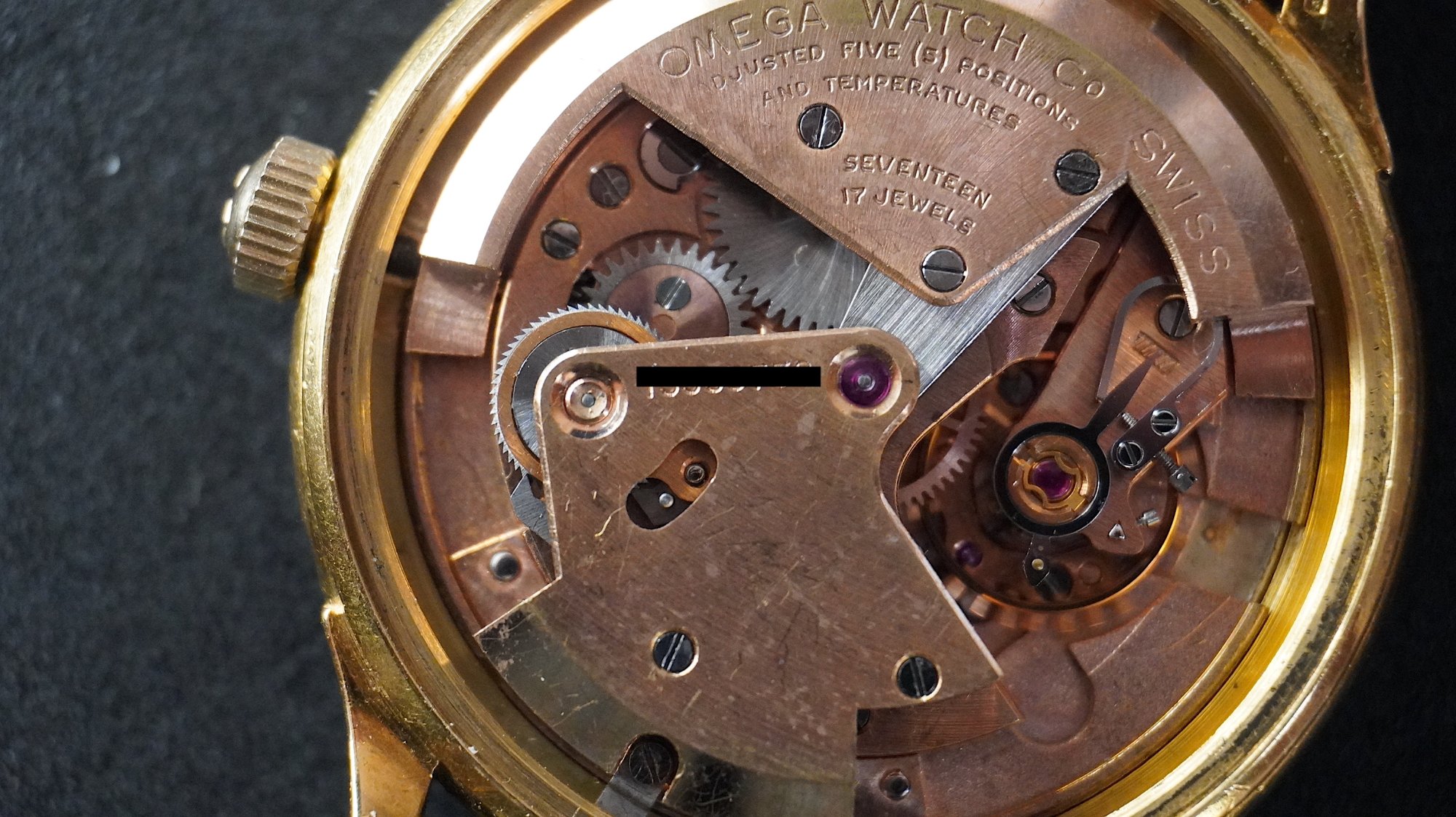 Like the Speedmaster this is an automatic self-winding movement, but with a significant difference. Modern automatics have a rotor which spin a full 360degrees to wind the mainspring, whilst the bumper rotor moves through 120degrees to bump against a pair of buffer springs on opposite sides. This regular