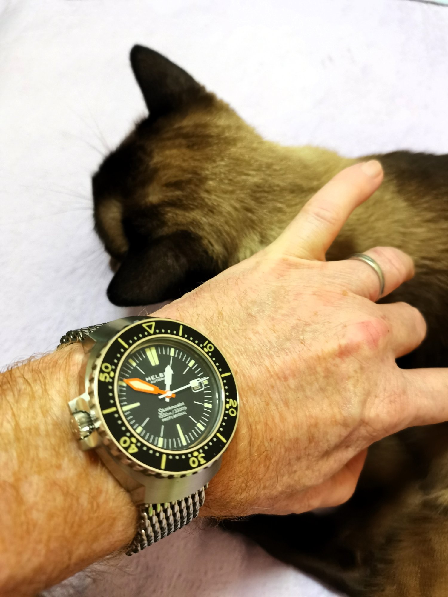 I'd really like an original Omega 1000m, however the pricing can be stratospheric and there are far too many OEM assembled parts watches out there. That's fair enough if the dealer/seller is clear and upfront that watch was created from OEM parts. If not simply a very bad deal as Omega in Switzerland wont issue any provenance on such a piece.Nice watch, also the cat, Siamese Sealpoint, right ??