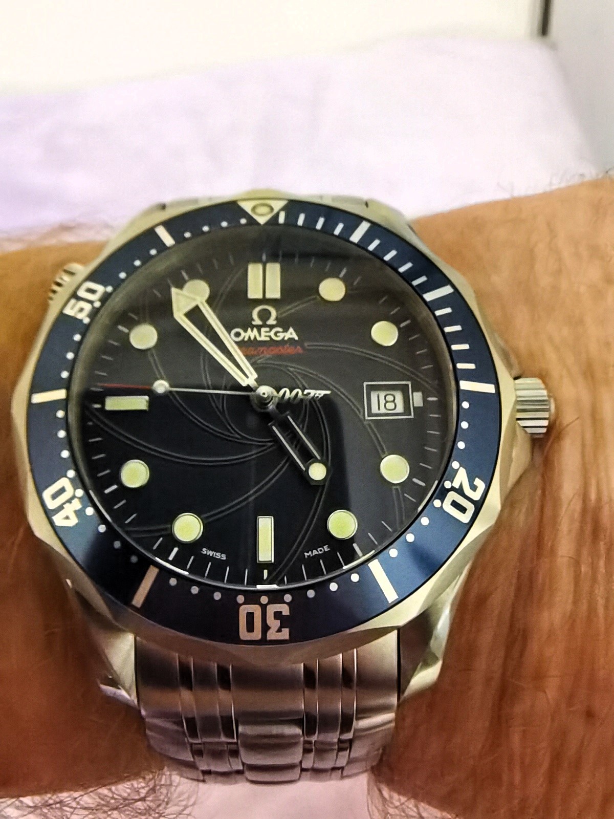 Agree about the battle scars on watches; wear them - they are designed to be worn and used - and post them.Not a huge fan of James Bond, all the same decent action adventure thrillers for the Sunday afternoon matineeIn the day saw this watch as a fun piece, arguably one of the more standout & adventurous 007 Omega's.