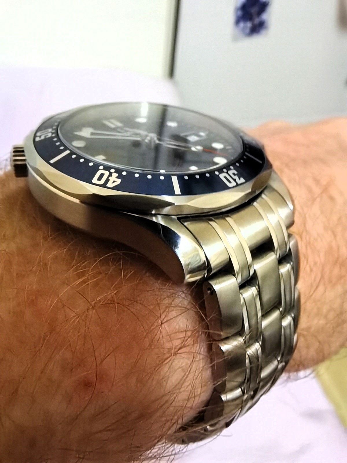 Has to be said the watch has frequently sparked conversation being not the most subtle of the 007's released over the years. Good is very accurate with the then new Coaxial movement. Low profile for a sports watch and relatively light in weight. The bad is the large clasp very easily picks up scratches and can polish up over time. Thankfully Scotch-Bite to the rescue which quickly restores the brushed finish with a little time and care. Just as and when, in the term of years as overdoing the brushed finish will take away from the sharpness of the clasps engraving.