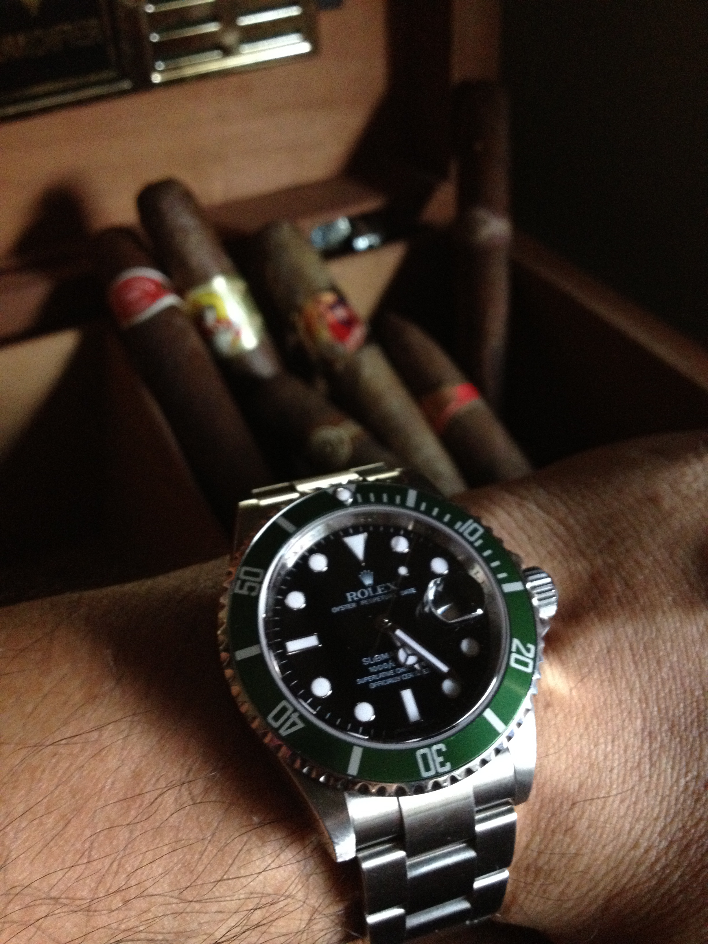 The Rolex is beautiful. I really like that green bezel.