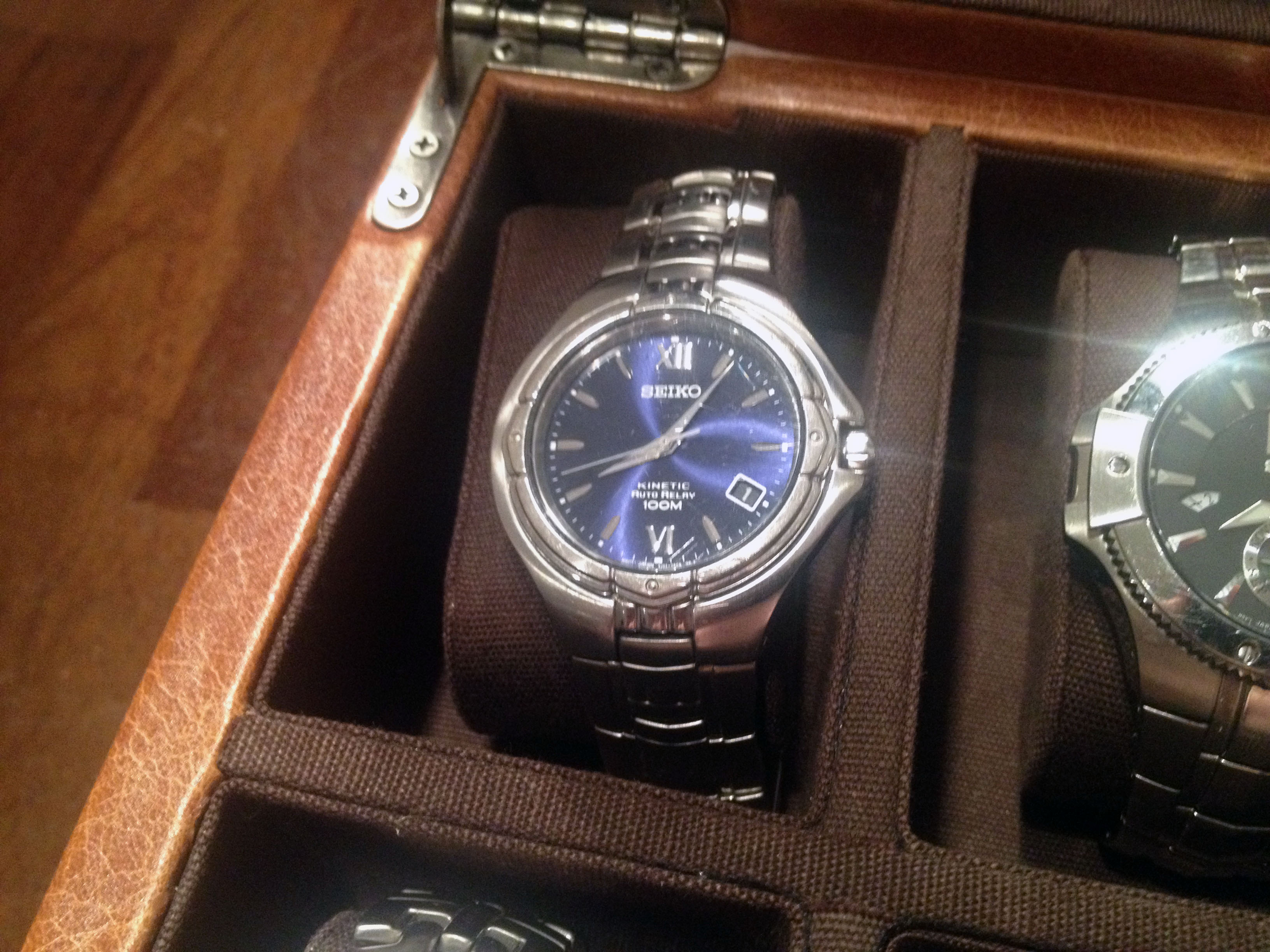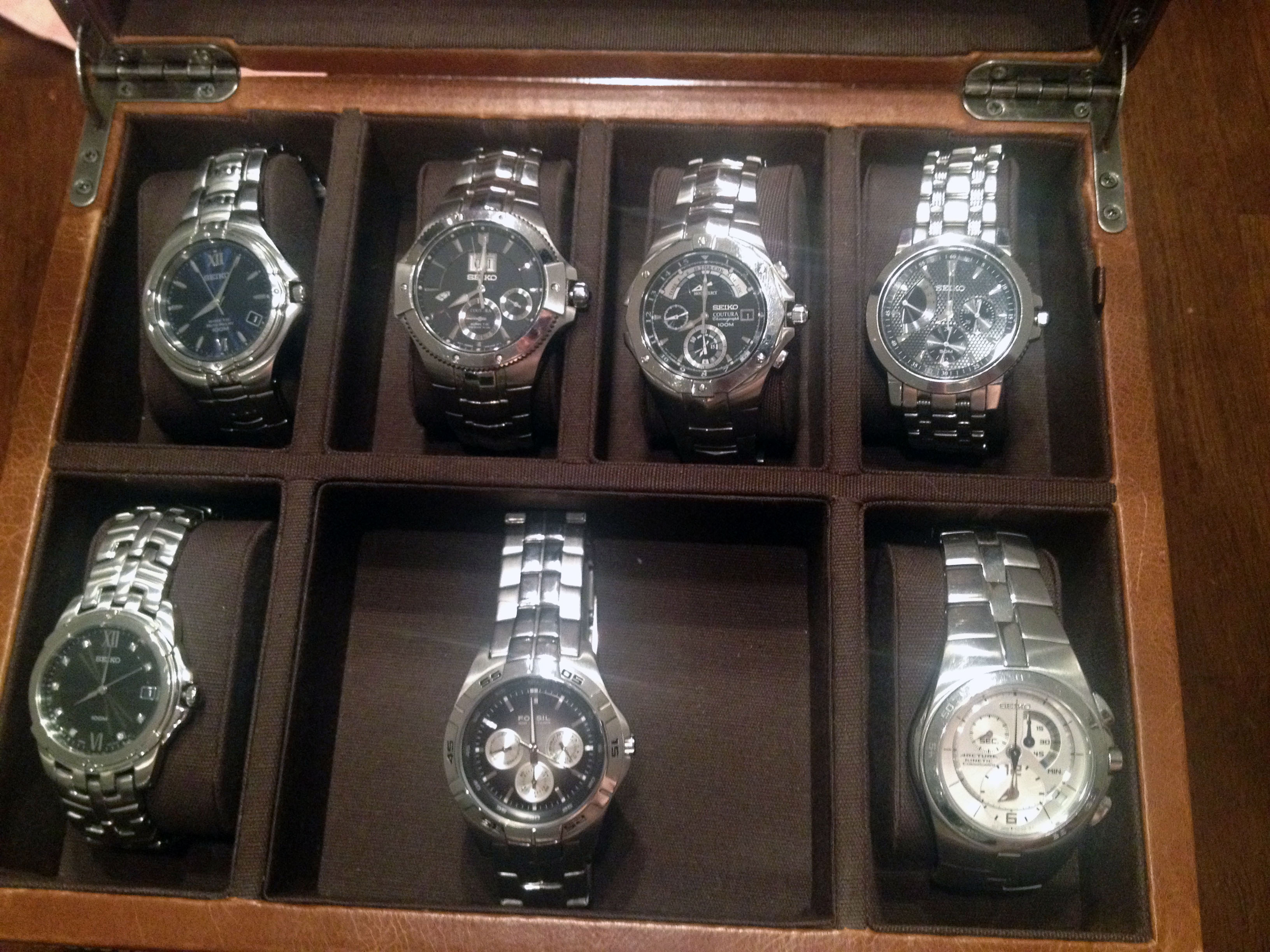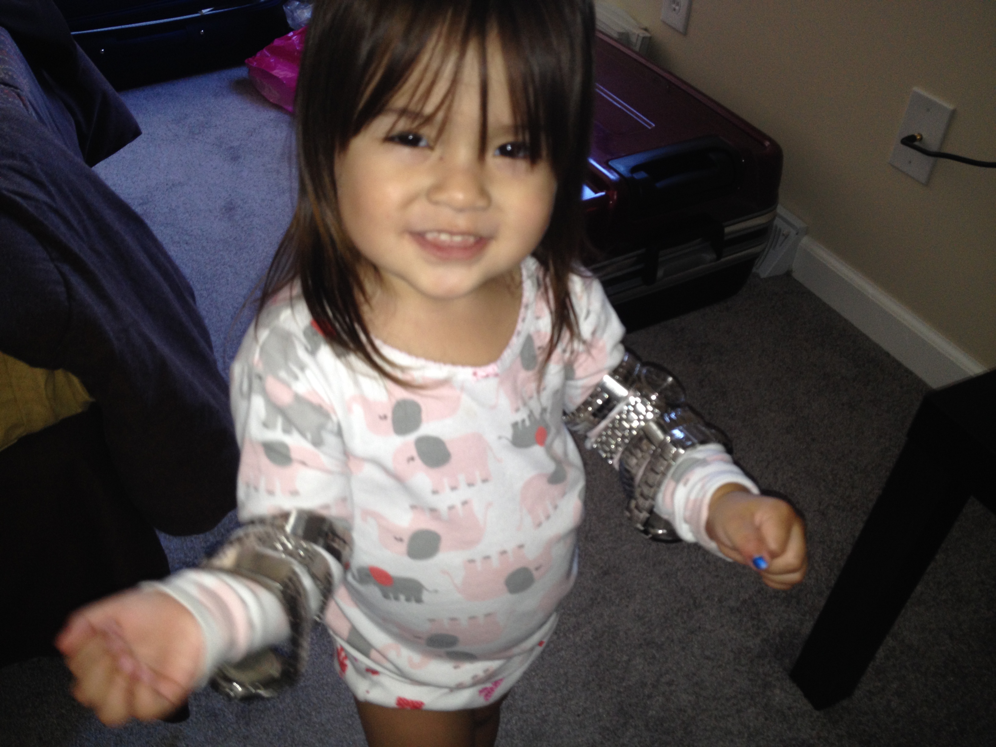 When my daughter finds my watch case, she thinks she's suppose to wear them all at once. A little blurry, as she wouldn't stand still but I thought it was cute.