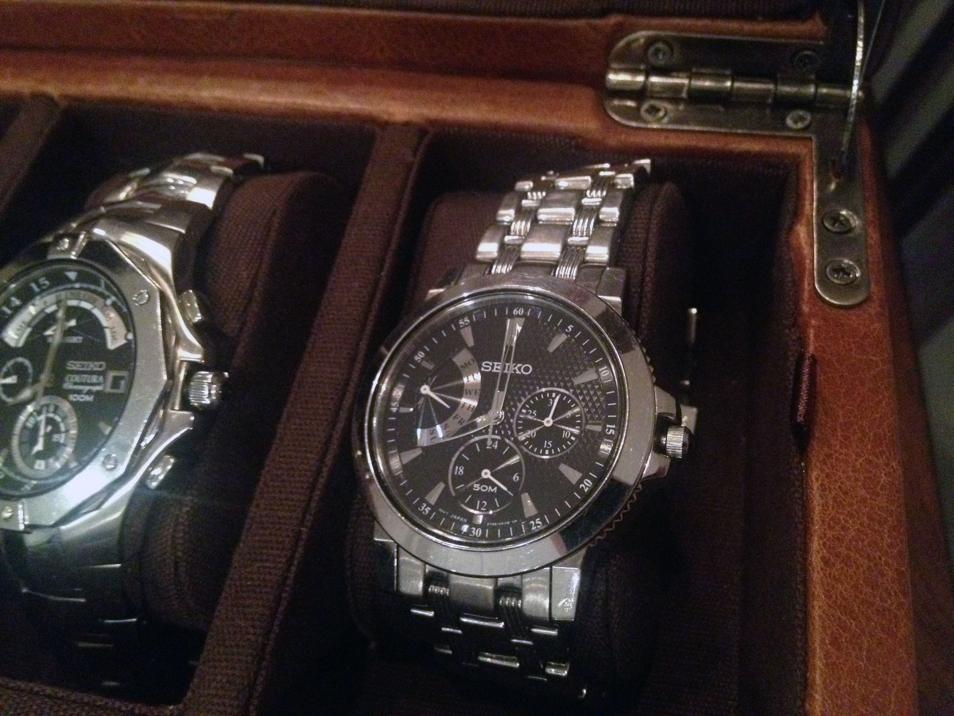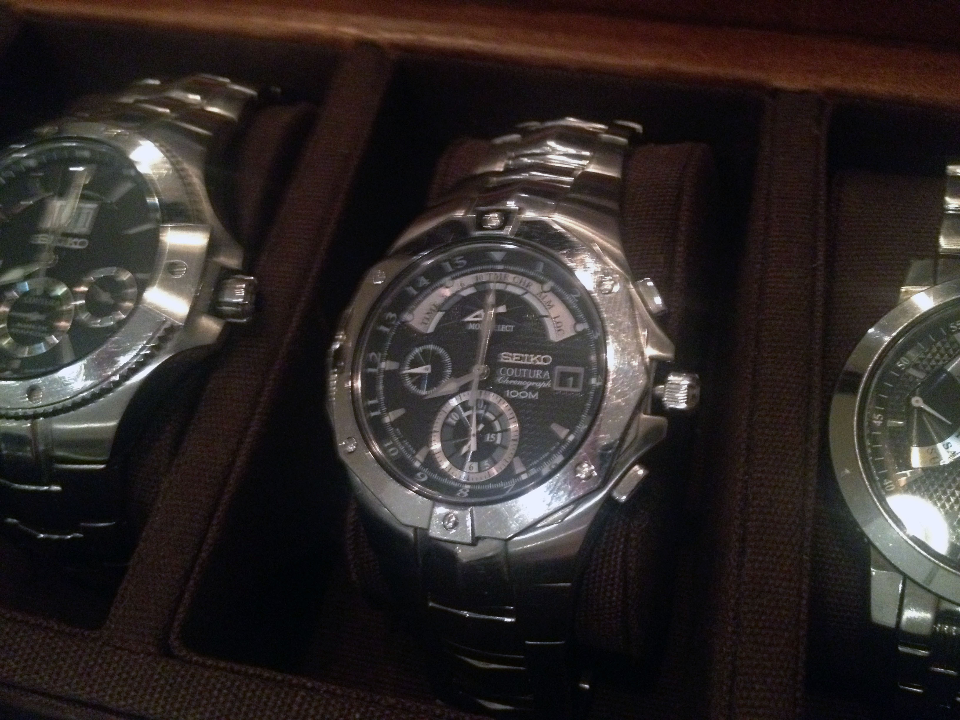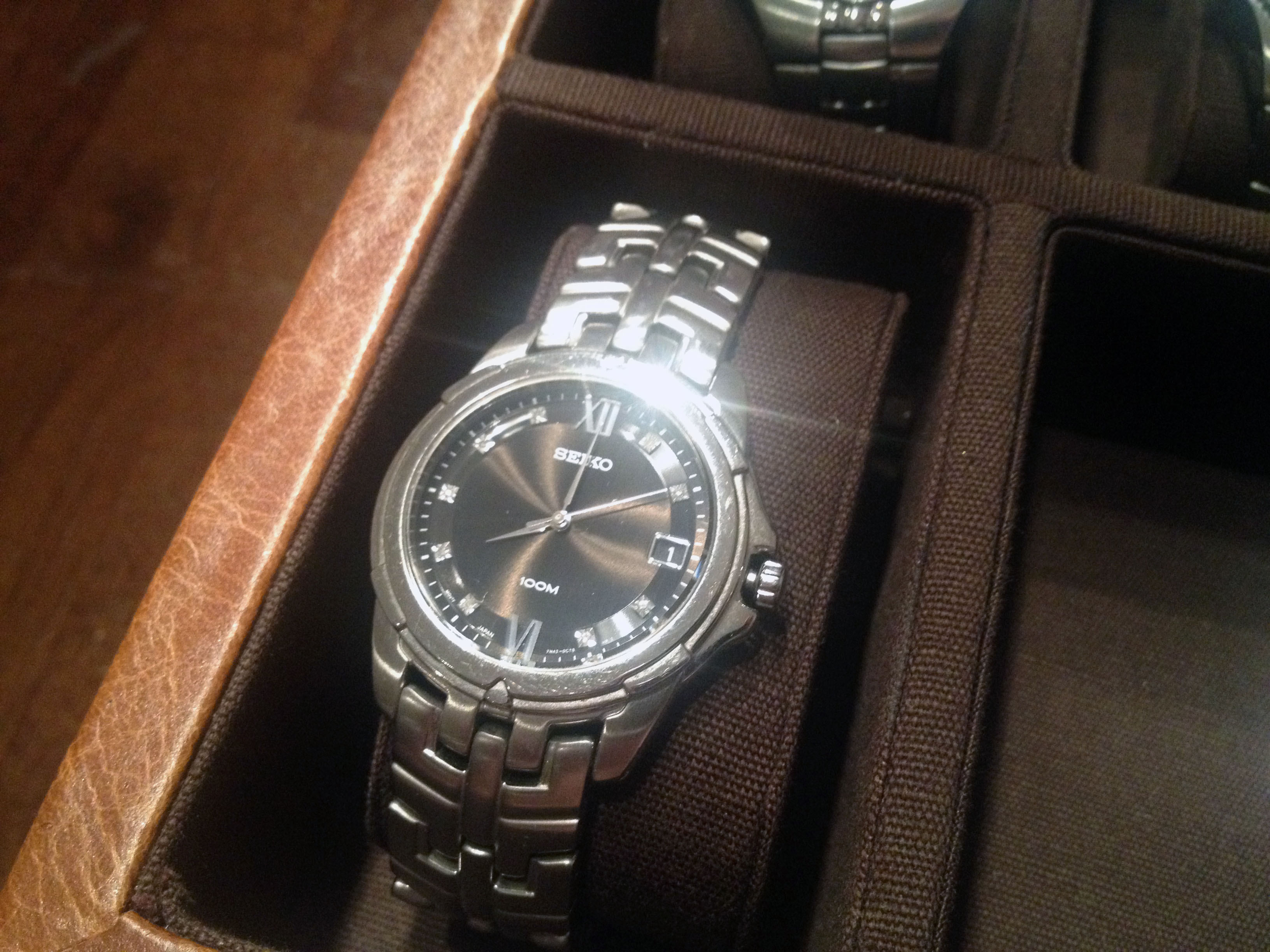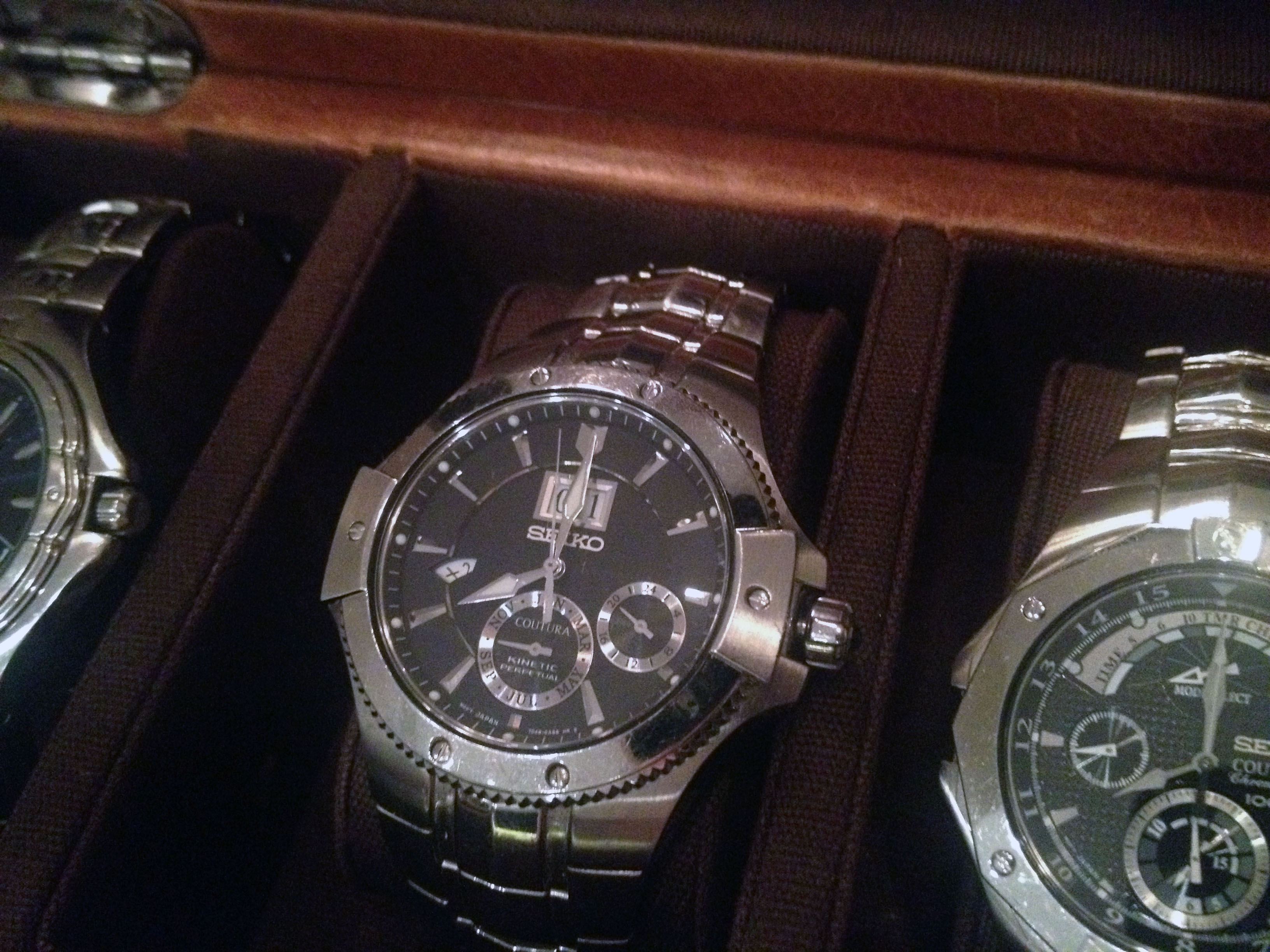 When my daughter finds my watch case, she thinks she's suppose to wear them all at once. A little blurry, as she wouldn't stand still but I thought it was cute.