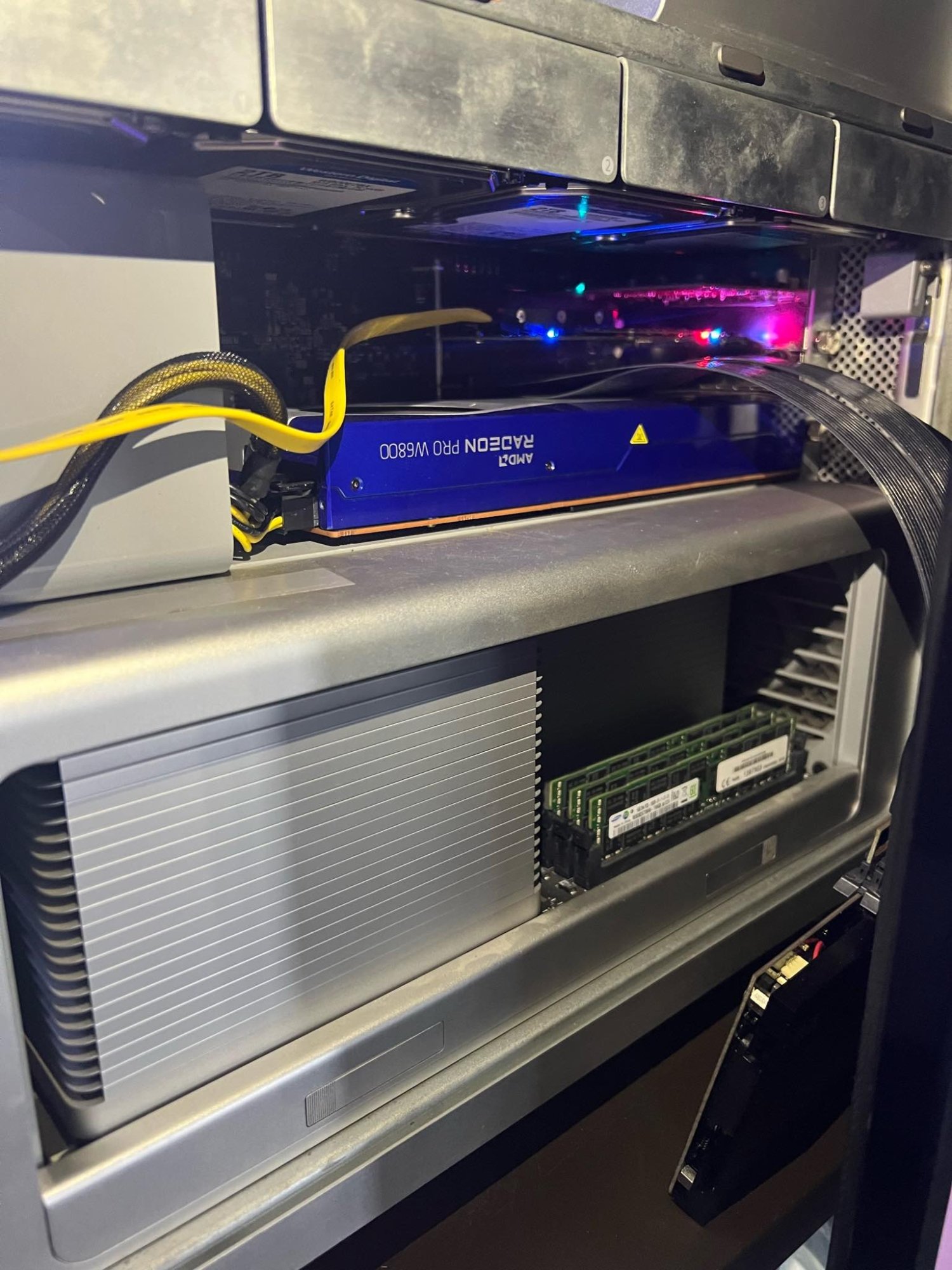 I "overdraw" (~90W) the mini 6pins for many years, no damage. And if we assume Apple follow the PCIe standard, then the mini 6pin should able to handle way more than 75W. Overdraw a little bit from there shouldn't be a problem.