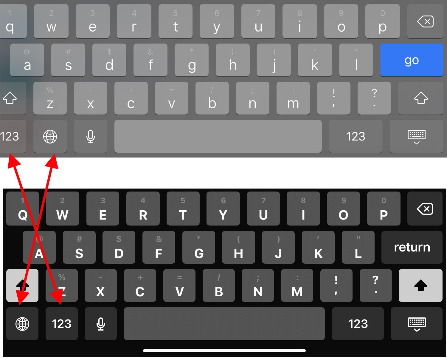 the new one more closely resembles the iPad hardware keyboards though where the globe is on the lower leftIt is absolutely jarring. No question. It’s reversed on the iPhone, which most of us use. I think it’s a terrible decision by Apple to have an iPad with one keyboard setup and an iPhone with another.