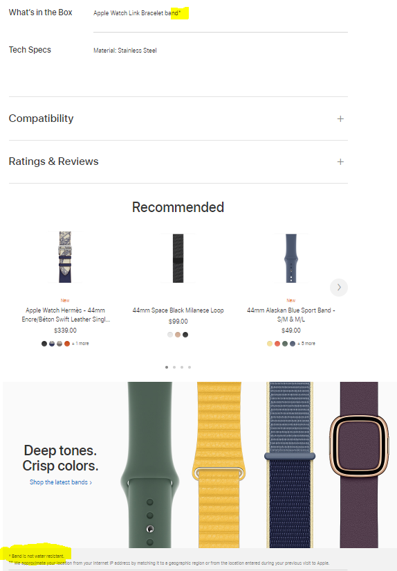 While most of the band is made of stainless steel I assume there are small parts that are iron-based - like maybe the connector brackets? - that would be prone to corrosion.
