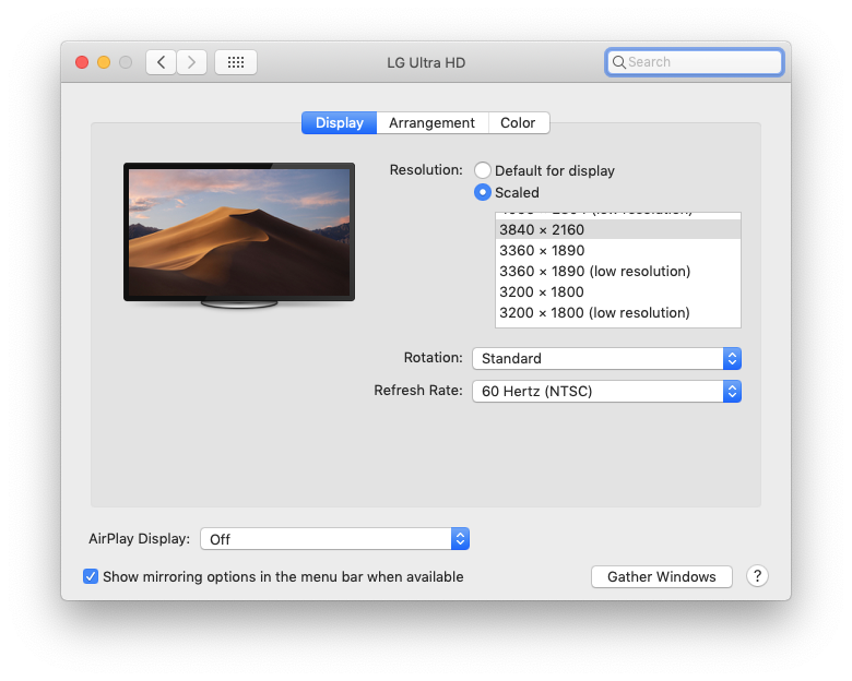 - The display works just fine on the resolution the MacOS detects as standard (3840x2160)