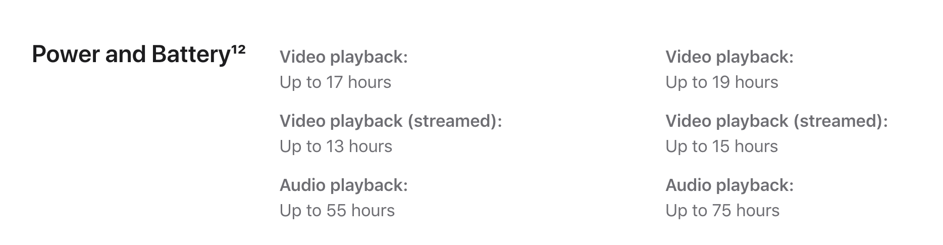 14inch MacBook Pro, "Up to 17 hours Apple TV app movie playback, Up to 11 hours wireless web". 16inch MacBook Pro, "Up to 21 hours Apple TV app movie playback, Up to 14 hours wireless web". Wireless web browsing cost 6-7 hours of battery life. Curiously, 13inch MacBook Pro/Air seems to be fine with wifi power consumption, only 3 hours battery drain with wireless web in a single charge.