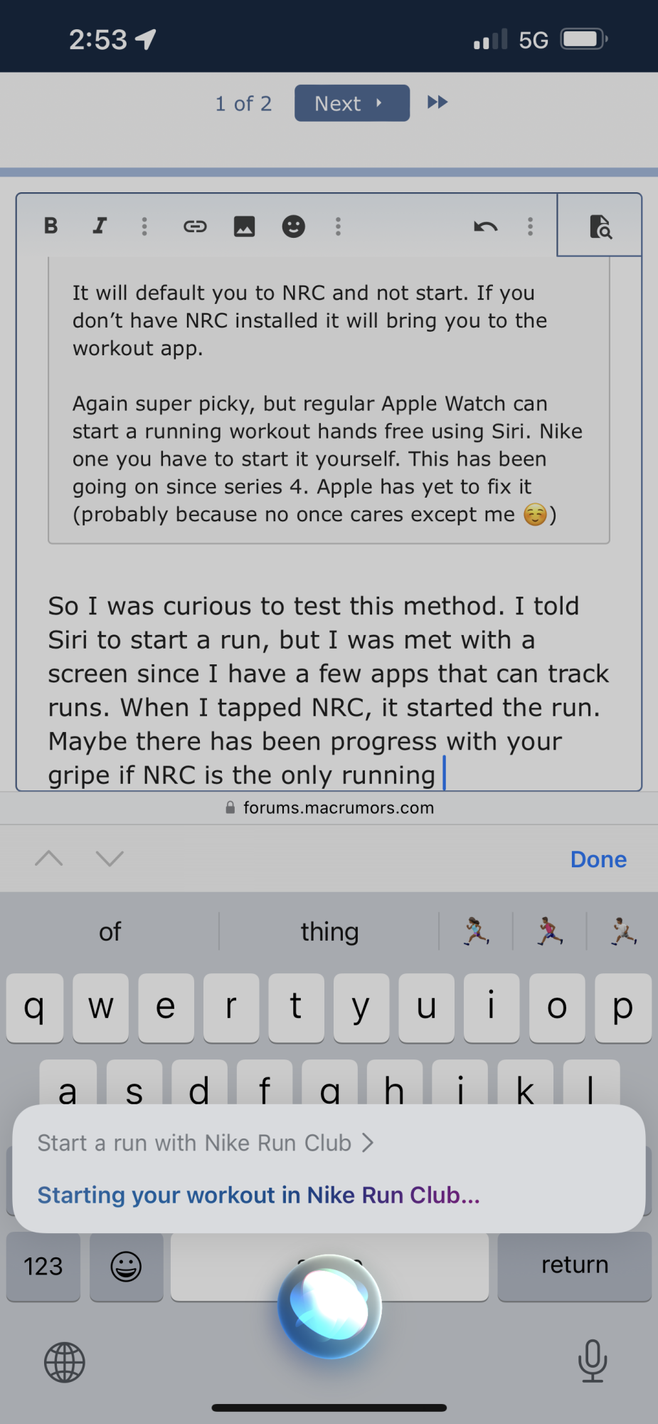 So if you say “Start a run in Nike Run Club, it does just that and needs no additional steps. Or did you mean starting a running workout with Siri in the stock workout app and not NRC?