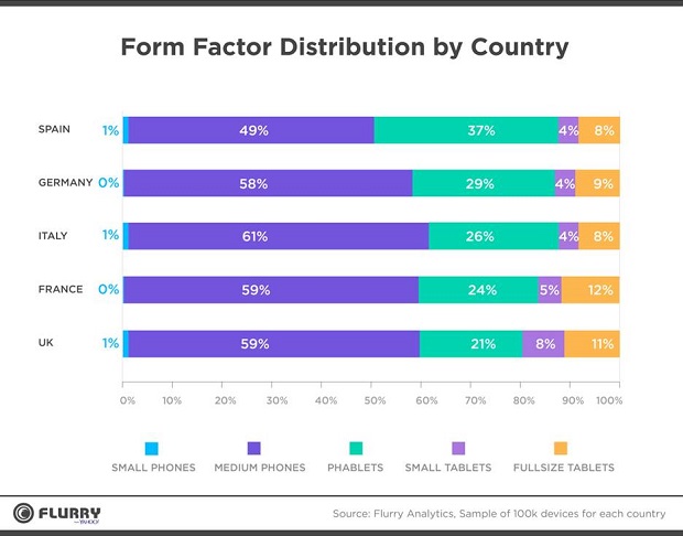 There is plenty of data showing adoption of phablets around the world, regardless of geographic region. Below is some data from 2015. I wouldn't consider Spain, Germany, or the UK to be emerging countries.