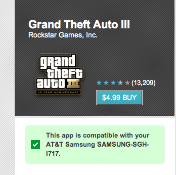 XDA has a thread describing in detail how to get GTA 3 on the phone (download it illegally), and another thread describing some bad stuttering problems people are experiencing after going through the trouble of getting it installed.