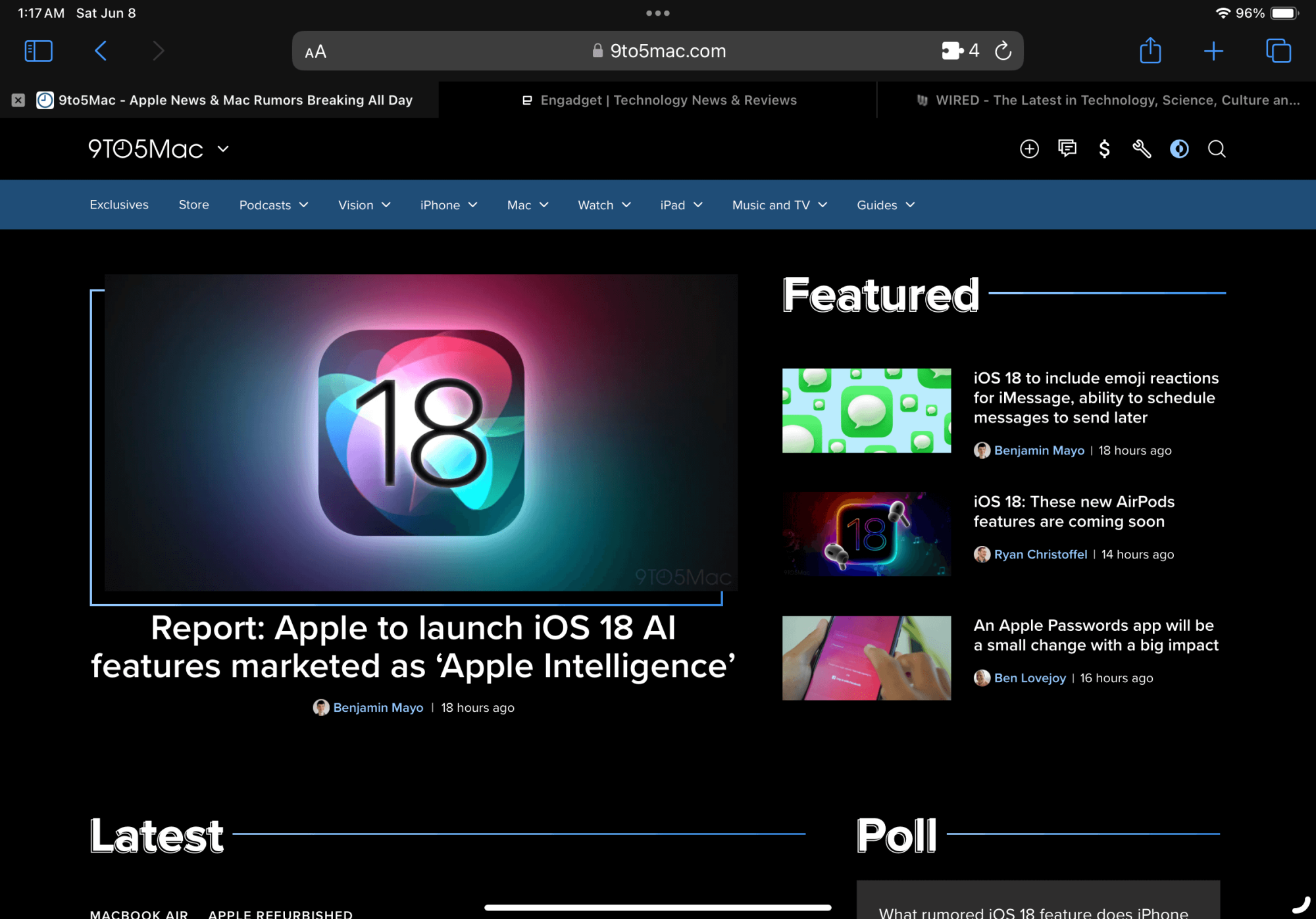 Thanks for this. I tried the 11 several times and making things smaller doesn’t work for me. Things just end up too small for my liking. I get it may work for some others and I’m not saying the 11” is bad.No doubt the bigger iPad provides more readable web content, but the 11" isn't bad and as was mentioned, on most sites, at 85% zoom on the 11", it's basically the same amount of content, just smaller. Attached are some screenshots from an 11" (M1) and 12.9" (M1). If you don't want to look at the filenames to figure it out, the 11" has 94% battery life and the 12.9 has 100% lol.