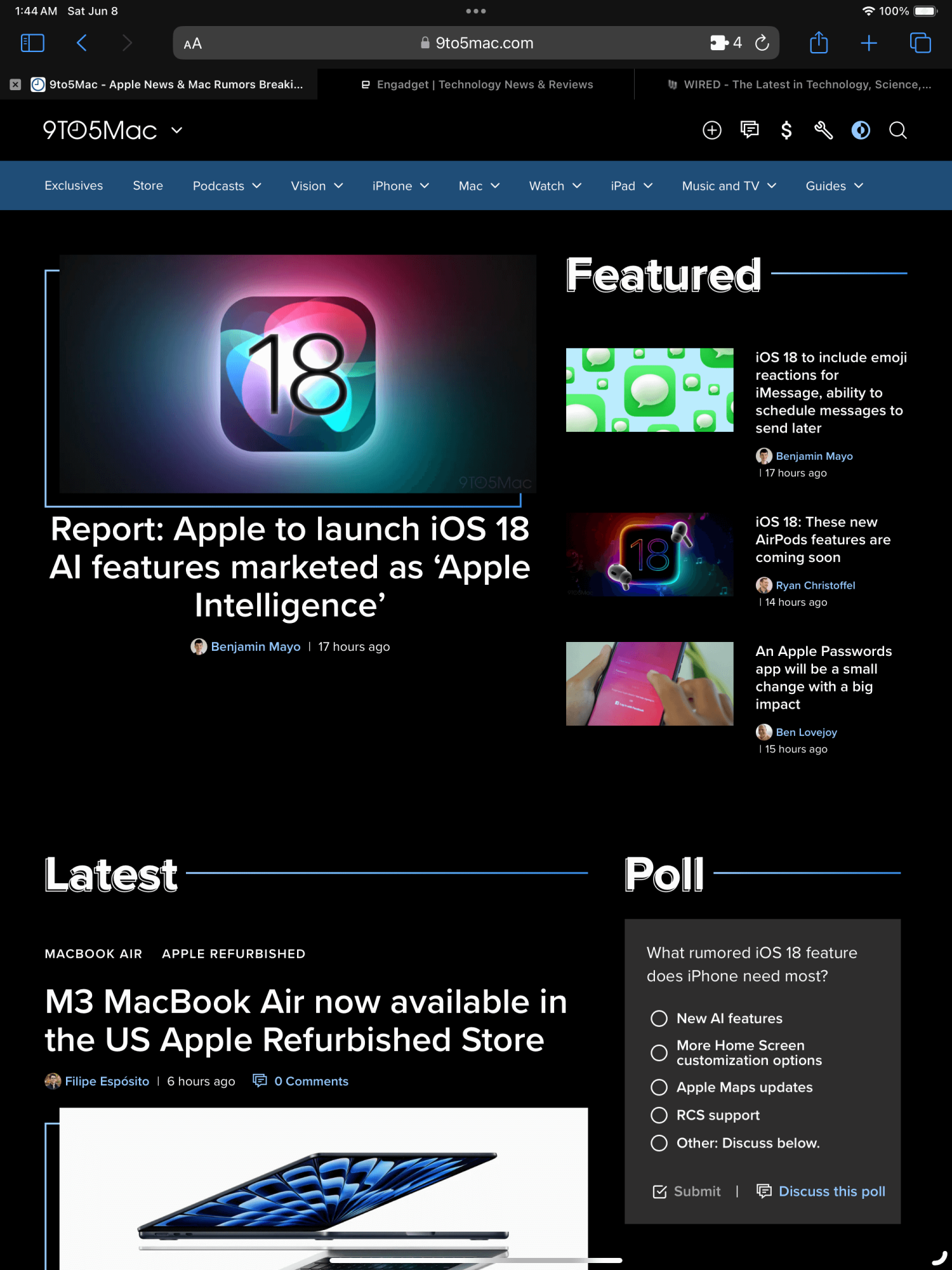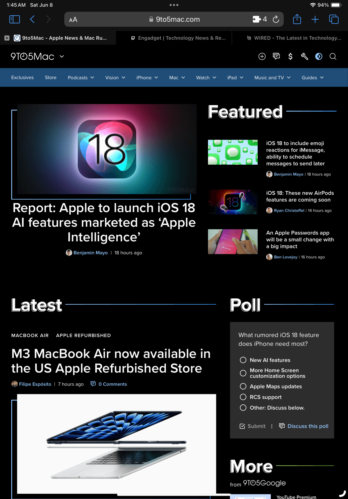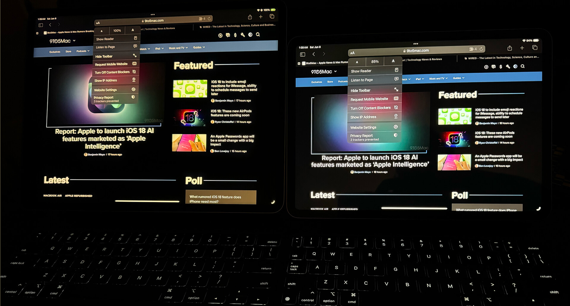 How about on 100% zoom? I feel like that's actually more relevant, since most users will want to use it on 100% zoom. Of course the 11" will show more content when zoomed out. But then again, the 13" will also show more content when you set it to 85% zoom as well.No doubt the bigger iPad provides more readable web content, but the 11" isn't bad and as was mentioned, on most sites, at 85% zoom on the 11", it's basically the same amount of content, just smaller. Attached are some screenshots from an 11" (M1) and 12.9" (M1). If you don't want to look at the filenames to figure it out, the 11" has 94% battery life and the 12.9 has 100% lol.