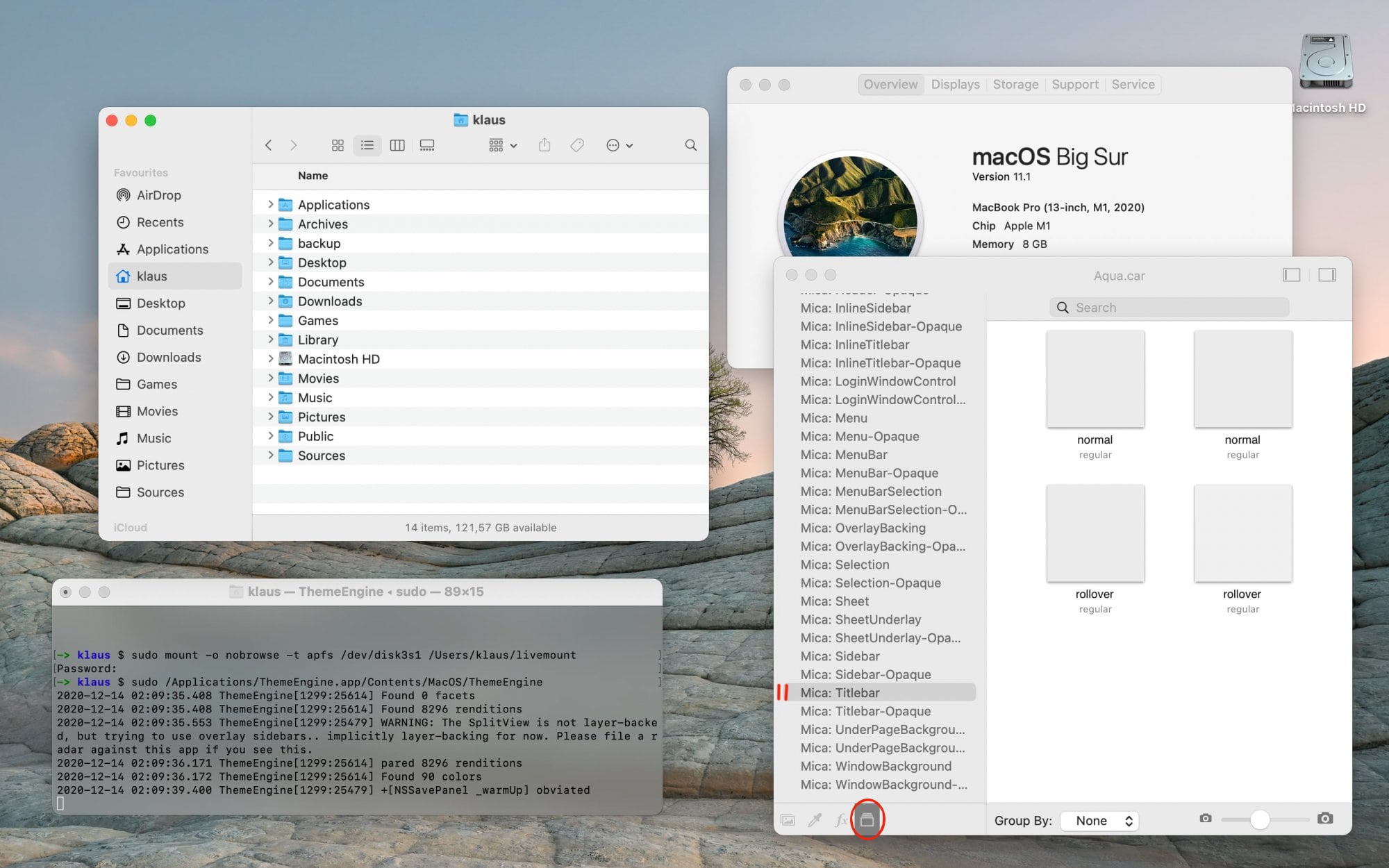 Doesn't appear you can do much to bring back the Mavericks or Mountain Lion UI. I'm still having issues with permissions on my MBP. It refuses any change I make. I'm still on Beta 4 so maybe it isn't compatible? I mean, it doesn't give an error; it acts like it makes the change, then immediately reverts back. For example: the Finder icon. It makes the change, you see the classic Finder icon for a second, then it reverts back to the crappy flat Finder icon. It's like there's some sort of SFC ala Windows XP going on here.