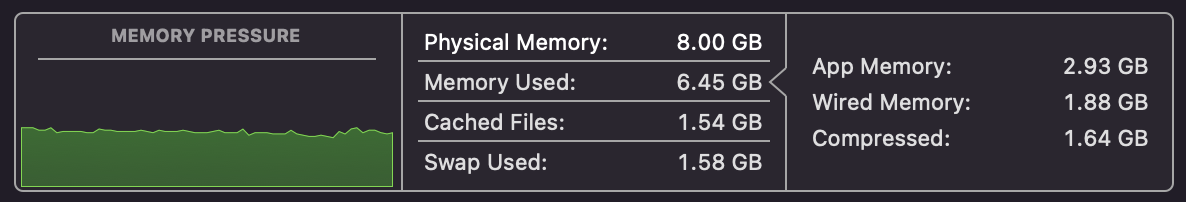 What are you trying to say with "Memory pressure is abysmal"? I agree on the memory management and caching, which is why I didn't mention the 40GB cached files, just the 20GB app memory.
