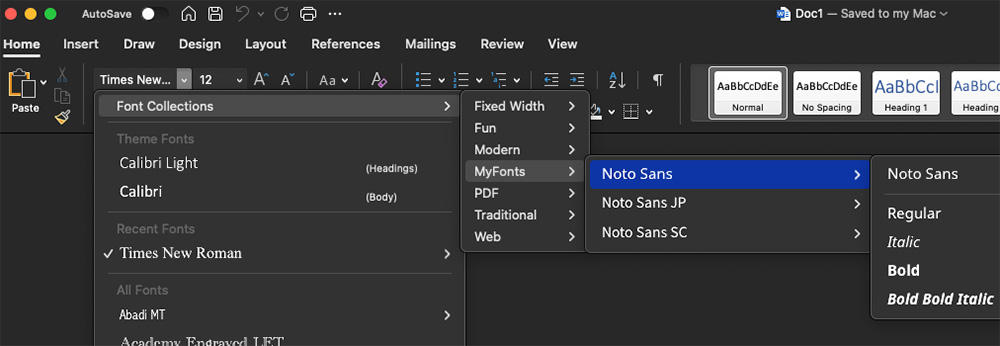 The second thing I see is that entering names of fonts to filter manually is actually quite difficult because the font list isn't scrollable while you're typing in the preferences dialog. A better implementation might be checkboxes in the Font Selector list itself (checking the box would be the same as typing the font name in the preferences).