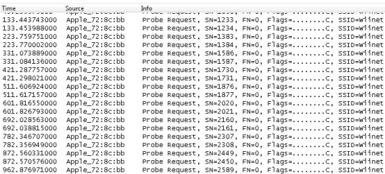 Actively probing a network is easy for the network to see. Its also easy for anyone that is looking with the right software to see. Again, this is a sleeping iPhone actively scanning....