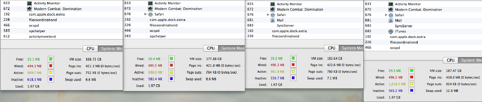 screenshot of activity monitor of the 2008 imac. Playing wow with several applications open in background without problems. SnowLeopard 10.6.8, safari downgraded to 5.0.5. Inactive ram reserved by photoshop.