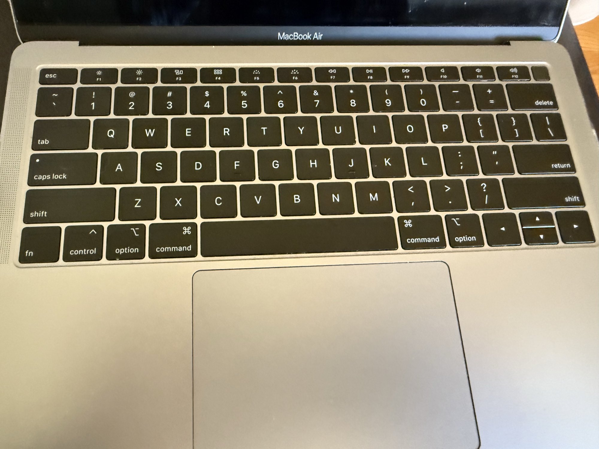 I’m working from home today, so here’s also my wife’s 2019 MBA, heavily used for almost six years. I don’t consider these keys as particularly shiny. Do you?