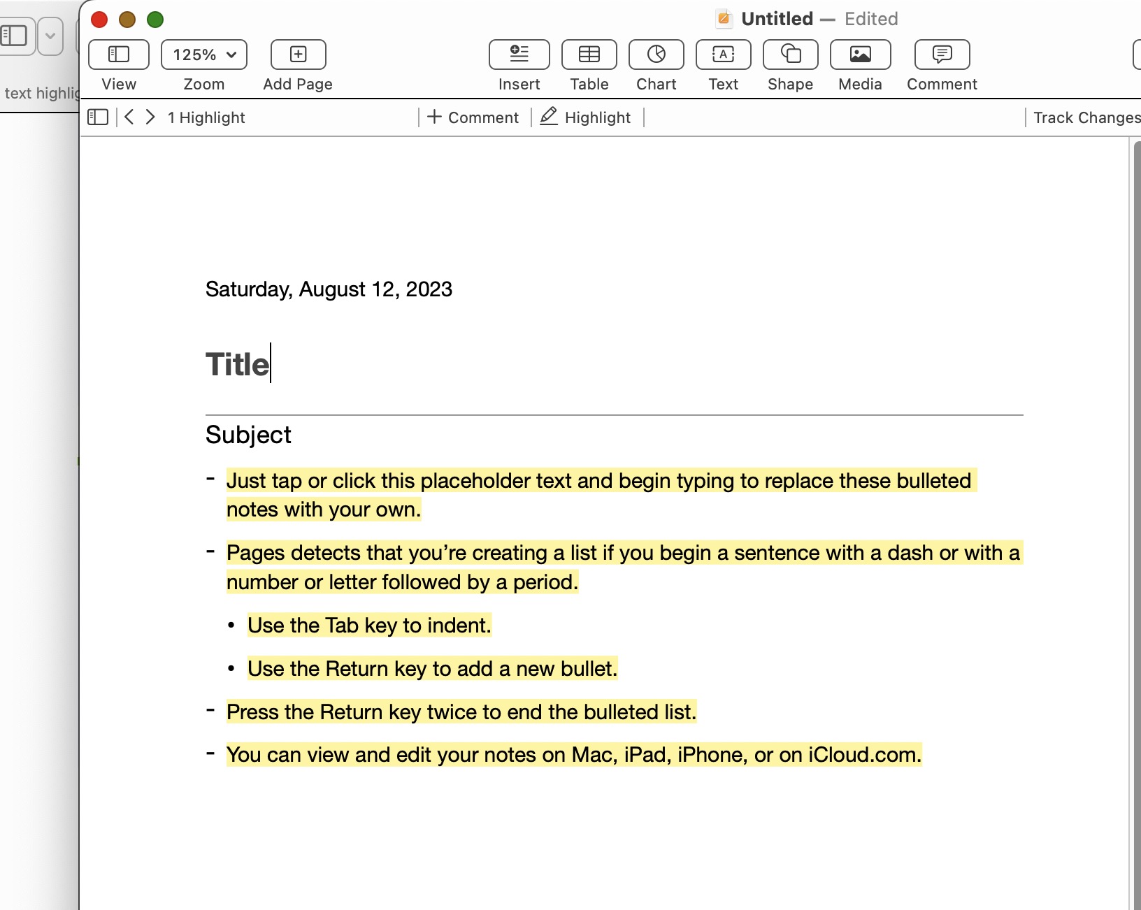 This is how you highlight text in Apple's iWork Pages, their Microsoft Word competitor. In the old Pages '09 version of the software, the highlight function used to be located normally, right next to text background. Now? Instead of locating the highlight feature right next to the text color function, you have to click this little cog wheel, then you have to understand that "Text Background" is what Apple is calling "Highlight," and then use that.