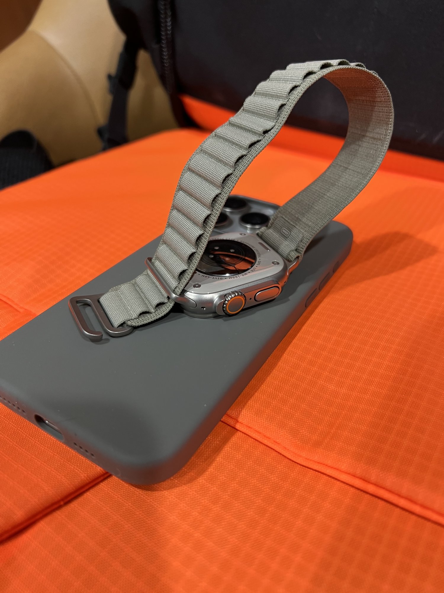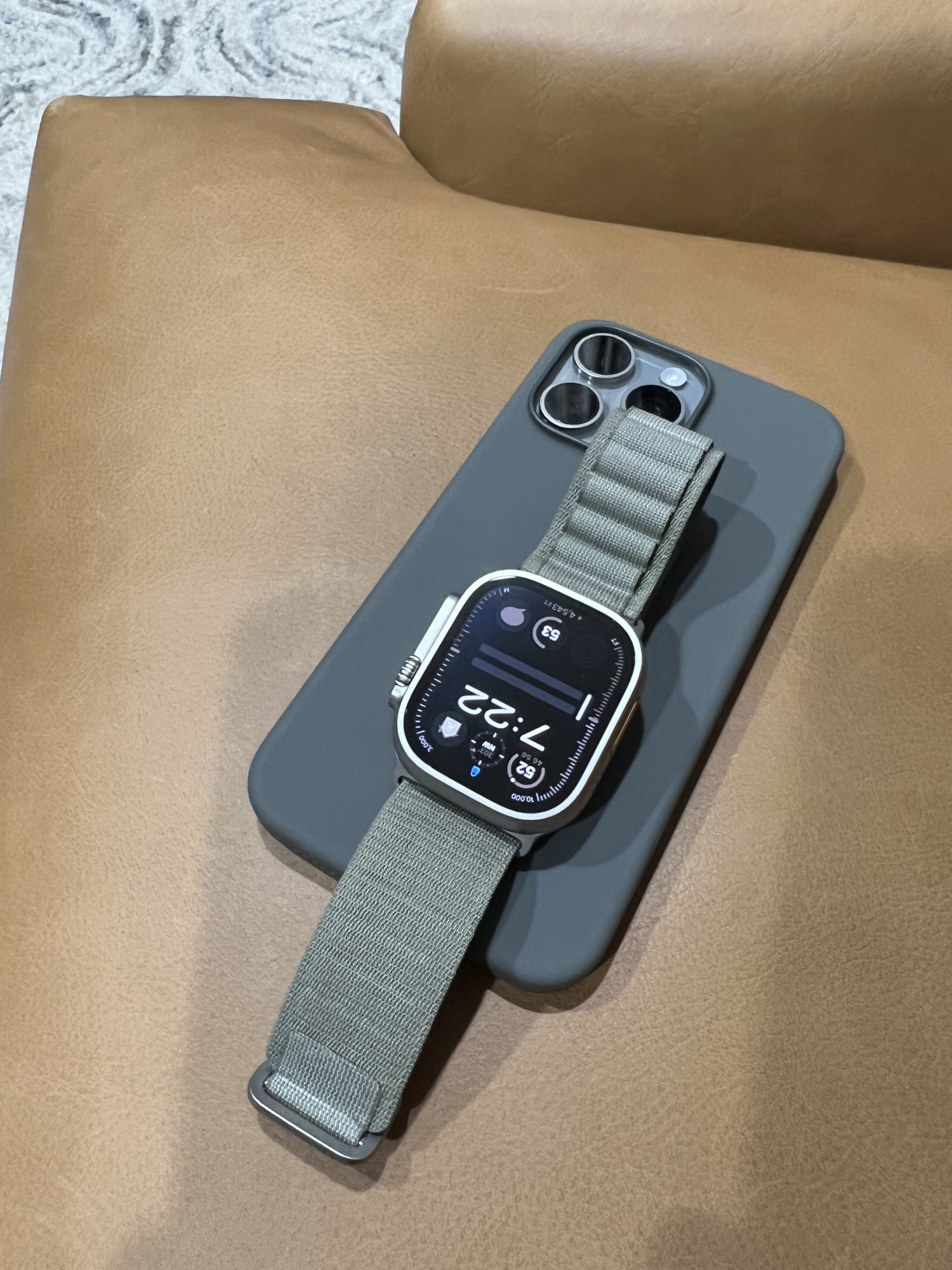 To match I want to upgrade from my AW S4 finally and get the Apple Watch Ultra 2 with the olive alpine loop cause it might look cool with the phone setup.