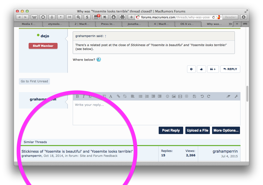 The "Yosemite is Beautiful" thread was closed as well. The mods simply thought it was going in circles.Has Apple got their way and silenced us?