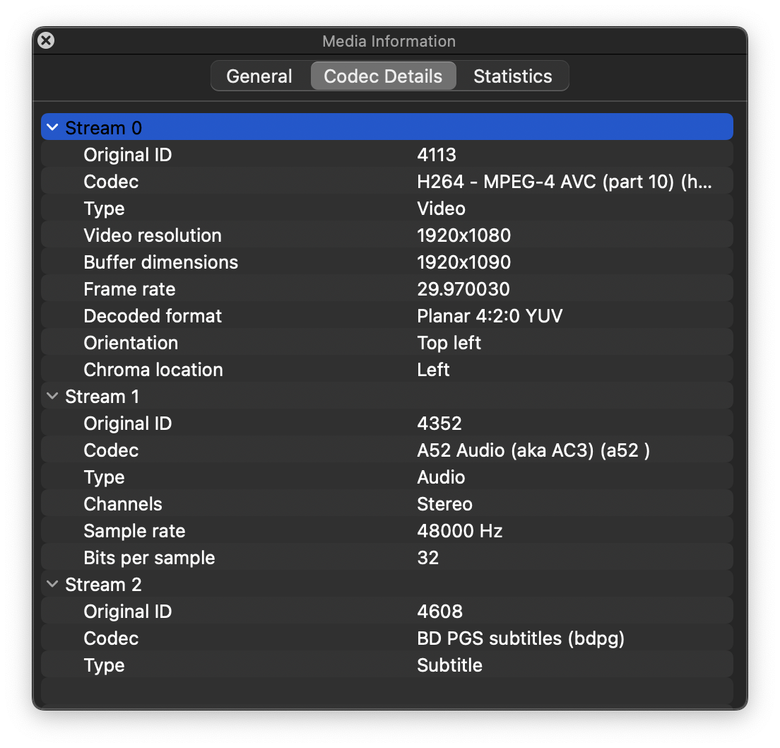 I have a video with the .MTS file name extension, which seems like it is for M2TS videos. In VLC the info for that video shows