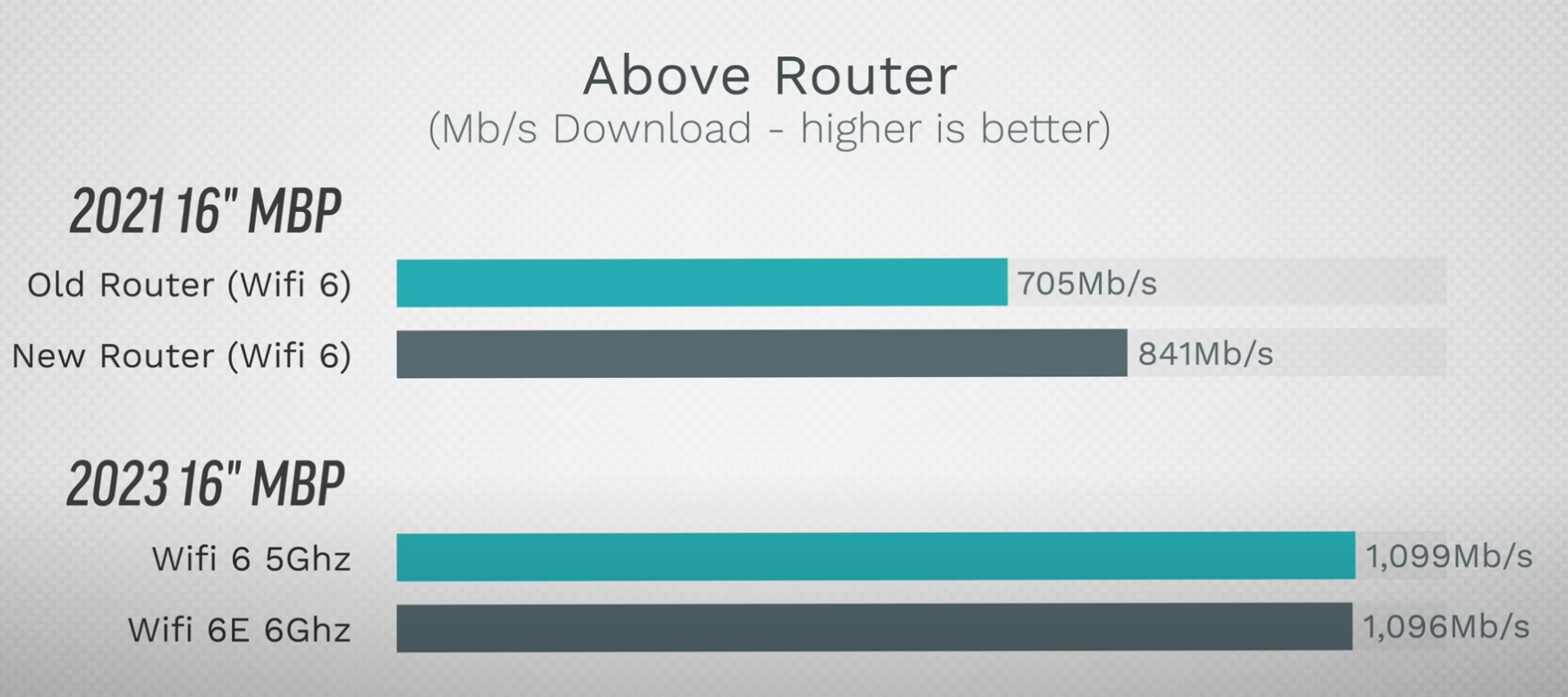 What does this mean in practical terms? For example, do you notice a significant speed increase in webpages loading? Smoothness in video streams? MaxTech showed that even his M1 Max MBP got better WiFi with a new 6E router. And for the M2 max, it looks like a 50% gain, so it seems like quite a bit...I have a WiFi 6 router, and my computers are around 30-40 feet from the router in a different room entirely. My gaming desktop with WiFi 6 pulls around 600 Mbps, but my 14" MBP with 6E pulls 900-1050 Mbps from the same spot. So you should be fine with a WiFi 6 router instead of 6e