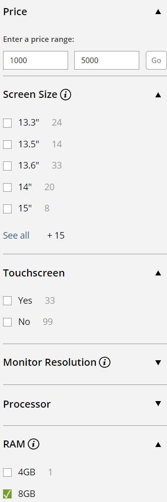 Put in 1,000 and above in the and then see how many 8GB laptops they sell (hint 1)All laptops at any price point filtered by RAM on BHPhoto.