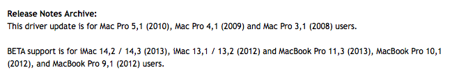 ^^^^AFAIK, Nvidia does not consider their Web Driver to be Beta or non-official when used on a 3,1, 4,1 or 5,1 cMP. See the attached note from their site.