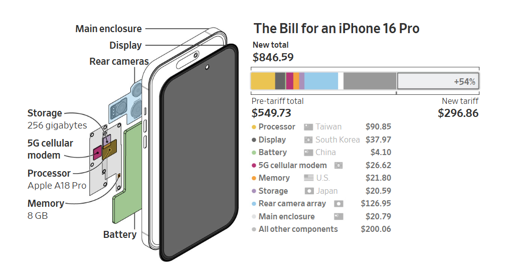 Where did they get this 54 percent increase from? Yes, Trump put a 34 percent tariff on China on top of the 20 percent from March, but that doesn't mean prices will go up 54 percent becauseWall Street Journal says the cost of an iPhone will rise 54% because of Trump's tariffs. At what point will you just say "no" to the price hikes?