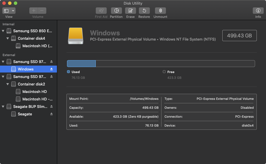 I'm still trying to figure how to hide the Windows external disk icon showing into macOS desktop. I did the Windows install with NTFS format, I did not wanted to use exFAT. Because the NTFS disk is read-only, I cannot use chflags to hide the icon, so until someone smart proposes a better fix, I set a nobrowse into /etc/fstab: