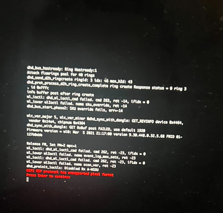 I am trying to install Windows 7 on a 2020 MacBook Pro: MacBook Pro "Core i5" 2.0 13" 2020 4 TB 3 Specs (2020 13" (4 TB 3), MWP72LL/A*, MacBookPro16,2, A2251, 3348): EveryMac.com I integrated NVME and USB 3.0 drivers (from XP2ESD pack) and deployed it using DISM. I then used the FlashBootPro 3.3n UEFI boot files. I also used canonking’s modified ACPI: acpi-sys.zip - Google Drive. However, when I try to boot it, this happens: Windows 7 on 2020 MBP - YouTube. It hangs for some reason. How do I get past this?