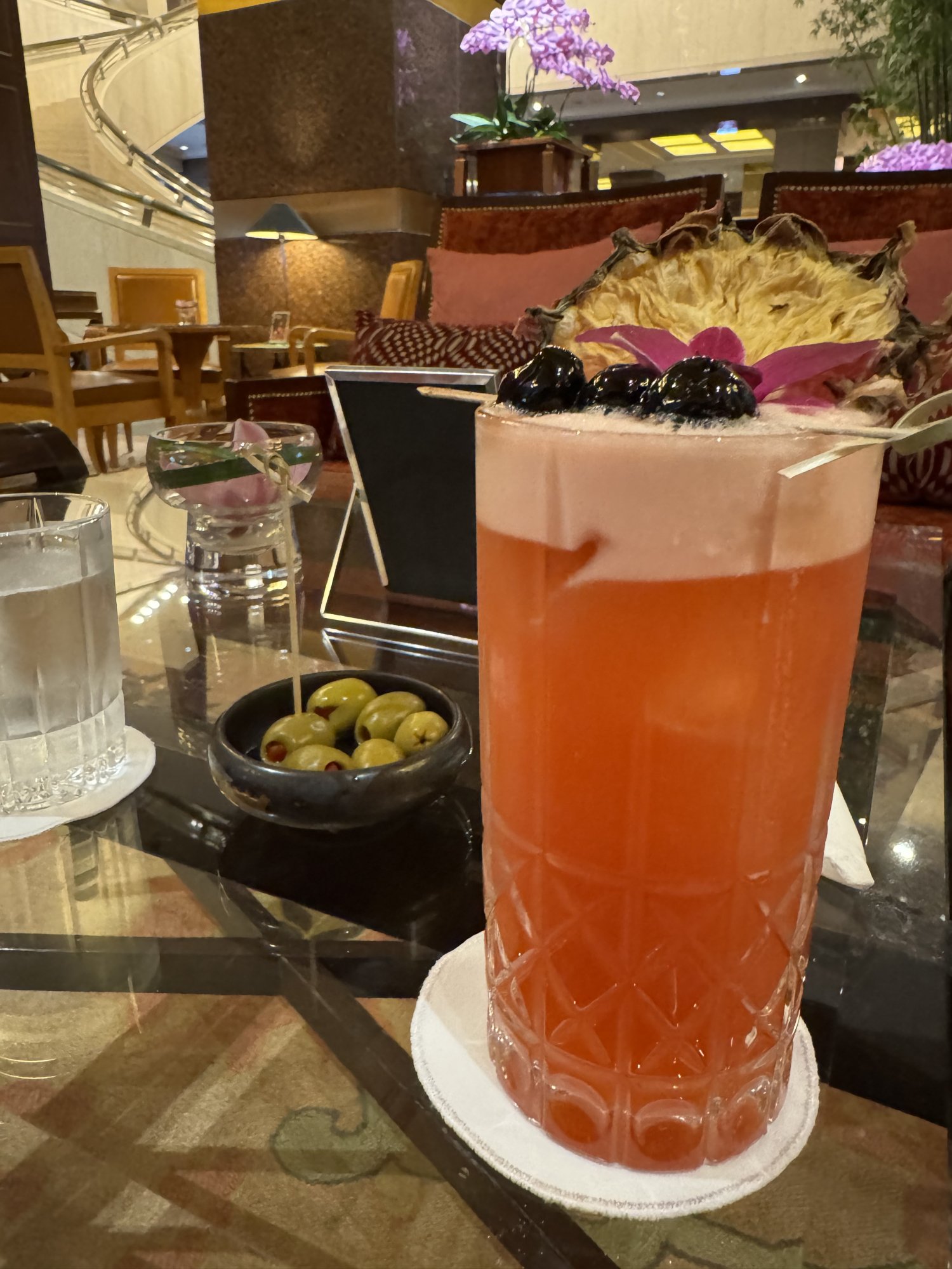 Meursault: Wonderful, now, that is much more to my taste.I think there is pineapple, grenadines and Angostura bitters. Oh it’s made out of gin. I usually never drink gins but in the cocktail it’s very good!