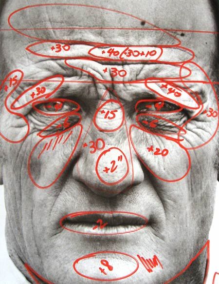 citysnaps said: Not at all. Most worthy photographs are. Here's one by Richard Avedon, showing his edit instructions that his print maker followed. View attachment 936256 Click to expand... Curious, what are these? Brightness/contrast and glares (like in the eyes) edits?