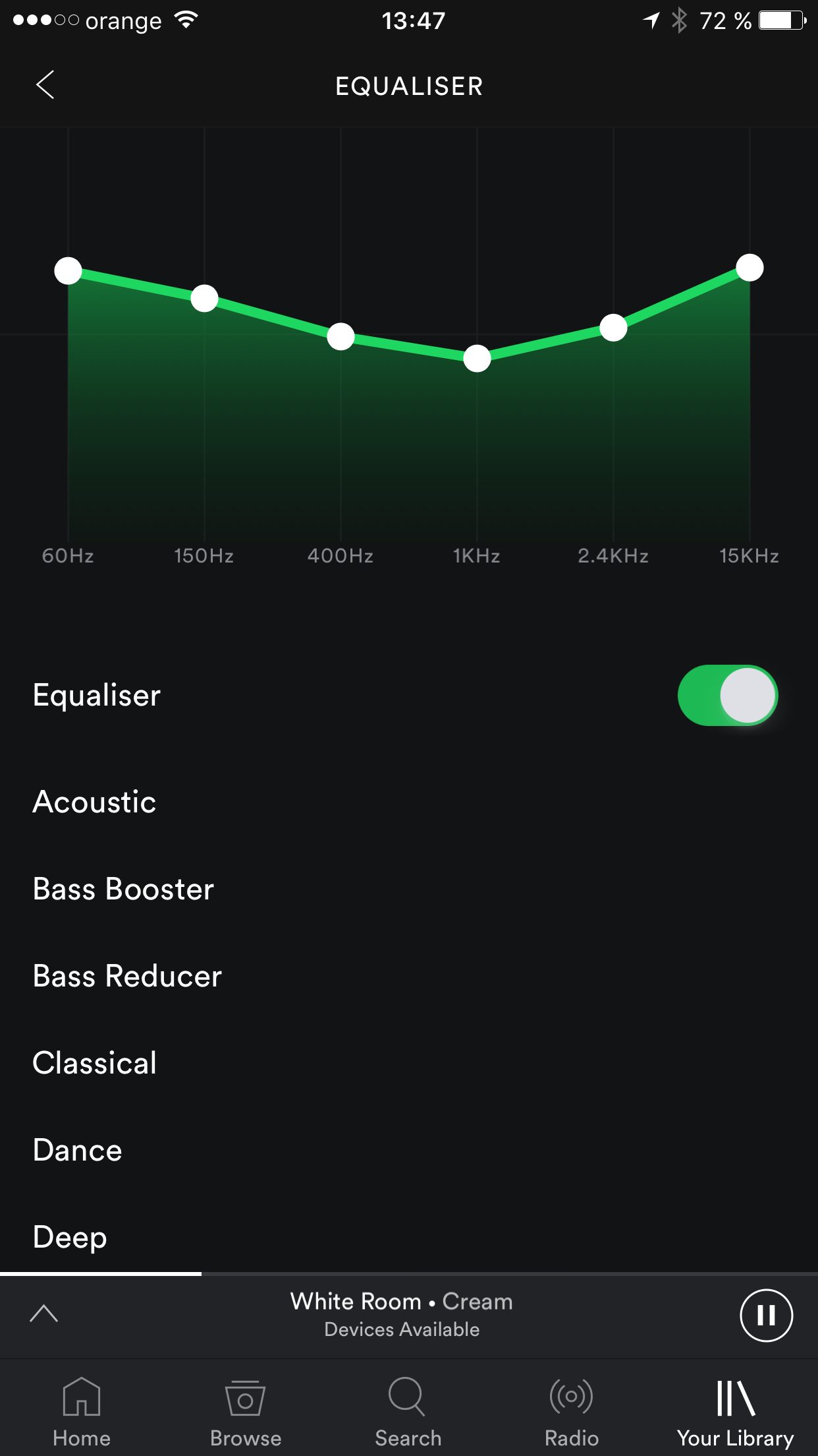 The music discovery is by far one of the best features for me. I've found hundreds of songs that I never would have found without Spotify. Also, Apple Music doesn't have an EQ?Last week I was looking for a list of songs from a TV show and I found an awesome Spotify playlist containing more than 300 songs from that show. That's how I got to try their service and it's been great so far. For me the most important feature of a music subscription service is music discovery, and for some reason Apple Music hasn't work very well for me in this regard. On Spotify their suggestions are pretty good and I love discovering user created playlists.